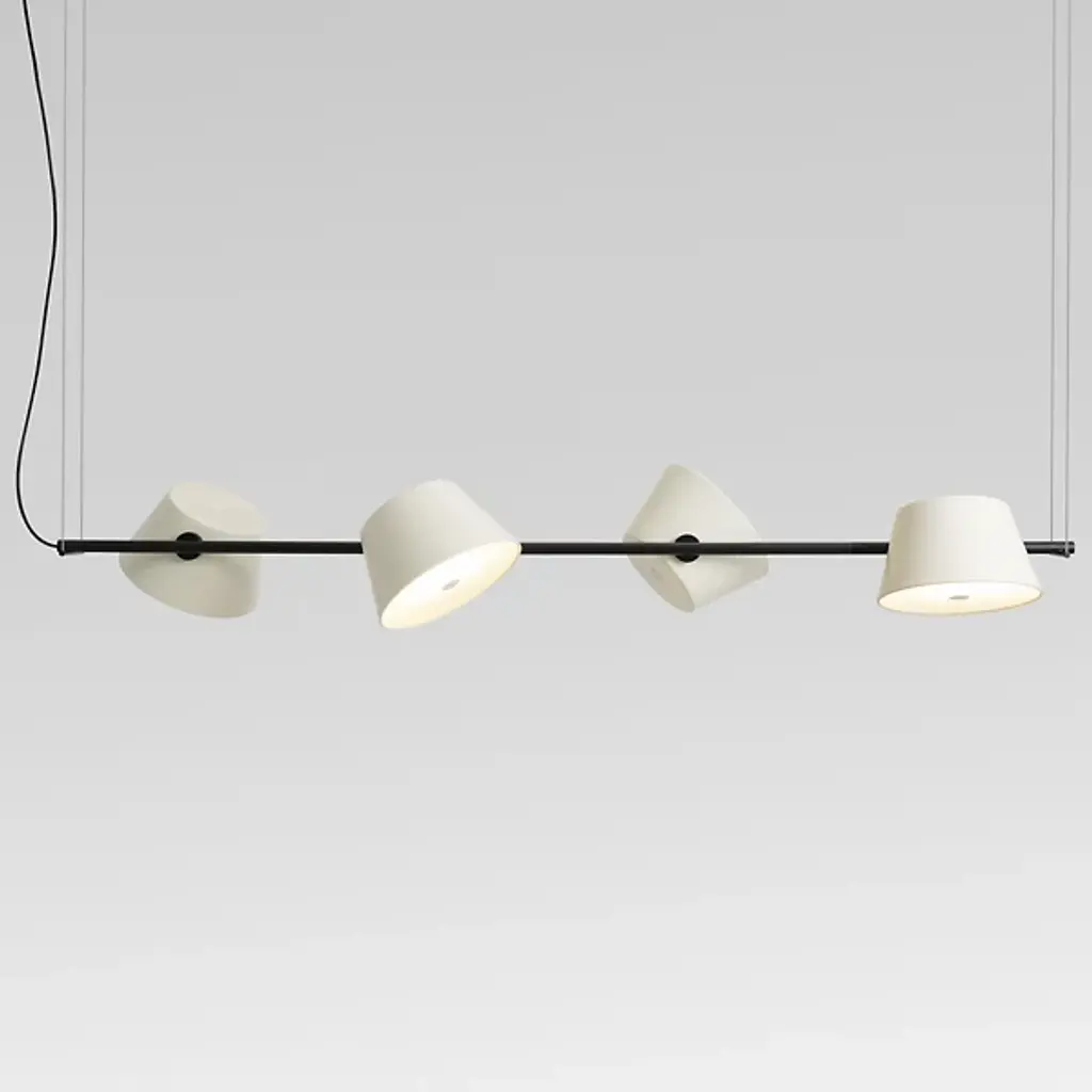 The bright, colorful Tam Tam 4-Light Linear Suspension by Marset was designed to provide spaces with a narrow, slim lighting option. The linear suspension has solid-colored shades that can fit into any neutral space. Place this linear suspension in dining rooms or kitchens for the perfect indirect light.