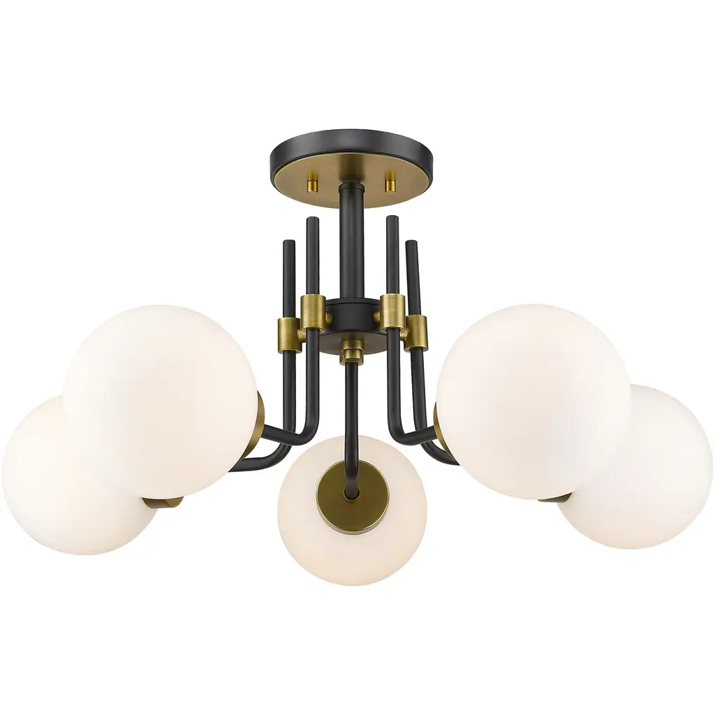 Tanaro Mid-Century Modern Gold Semi Flush Mount Globe Ceiling Light 5 & 7 Lights - Brass - 7-Light