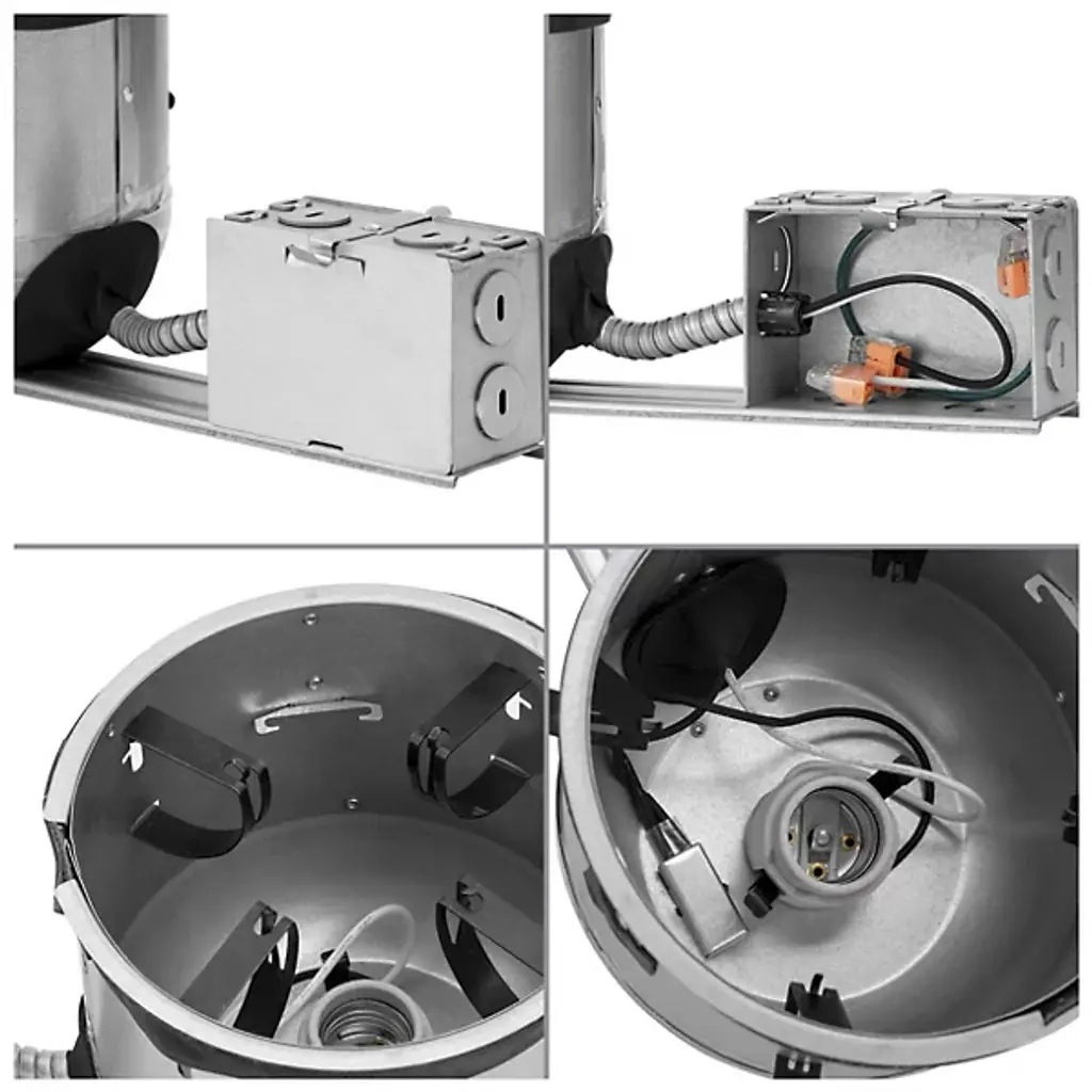 Huxe presents the Teagan 6" Remodel Shallow Airtight IC Housing. It is specially designed to be installed from below the ceiling, ideal for those with limited or no access to above the ceiling. Its shallow design is ideal for 2x6 construction applications and non-IC new construction applications. Its gasketed Air-Tight housing restricts airflow from conditioned spaces into unconditioned attic space, preventing unnecessary HVAC costs and improving home energy efficiency. The housing is constructed from die-formed corrosion-resistant galvanized steel. An integral flange permits quick mounting in 1/2 in. to 1-1/2 in. thick ceilings. Wiring is easy with the included wiring quick-connects. It is UL and CUL listed for damp locations.