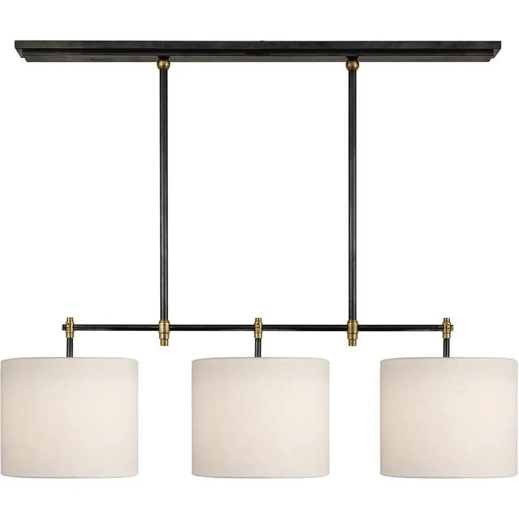 Thomas O'brien Bryant 3 Light 60 Inch Hand-Rubbed Antique Brass Billiard Light Ceiling Light In Linen, Large