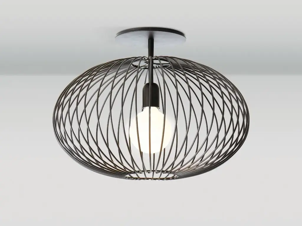 E27, max. 1x 53WFinishesC2 Black opaqueC7 IvoryTITI | Collection of table, ceiling and suspension lamps made of powder coated tubular steel. Ability to mount accessory lamp shade of white fabric.