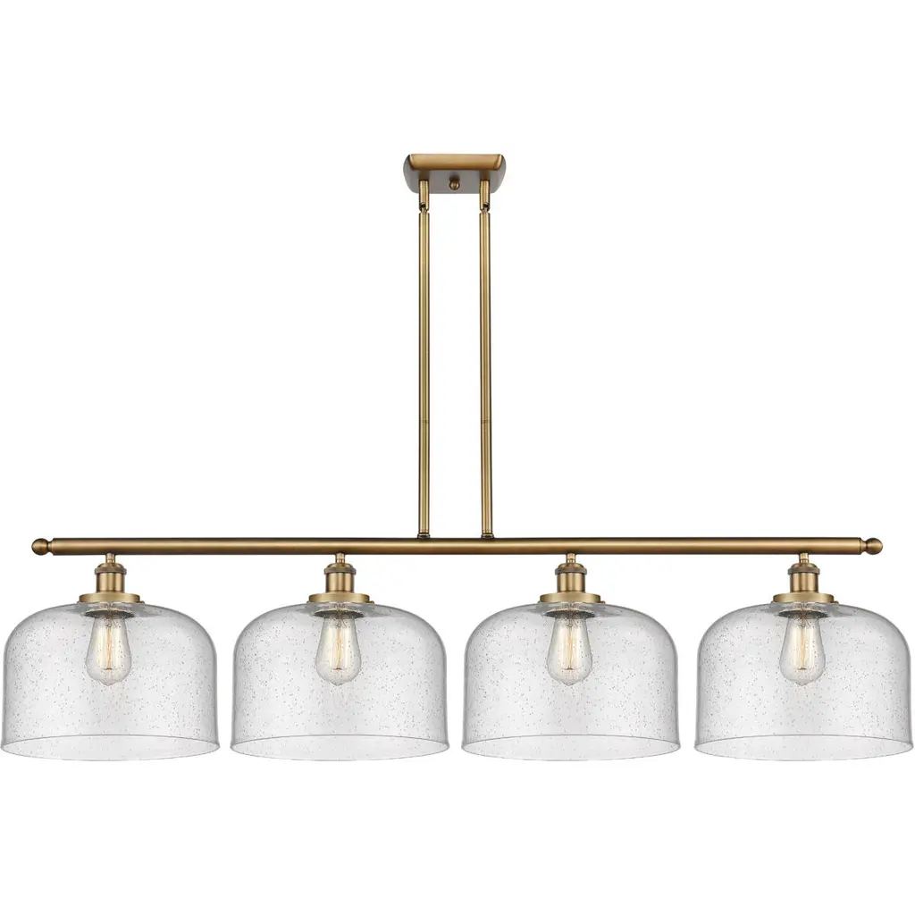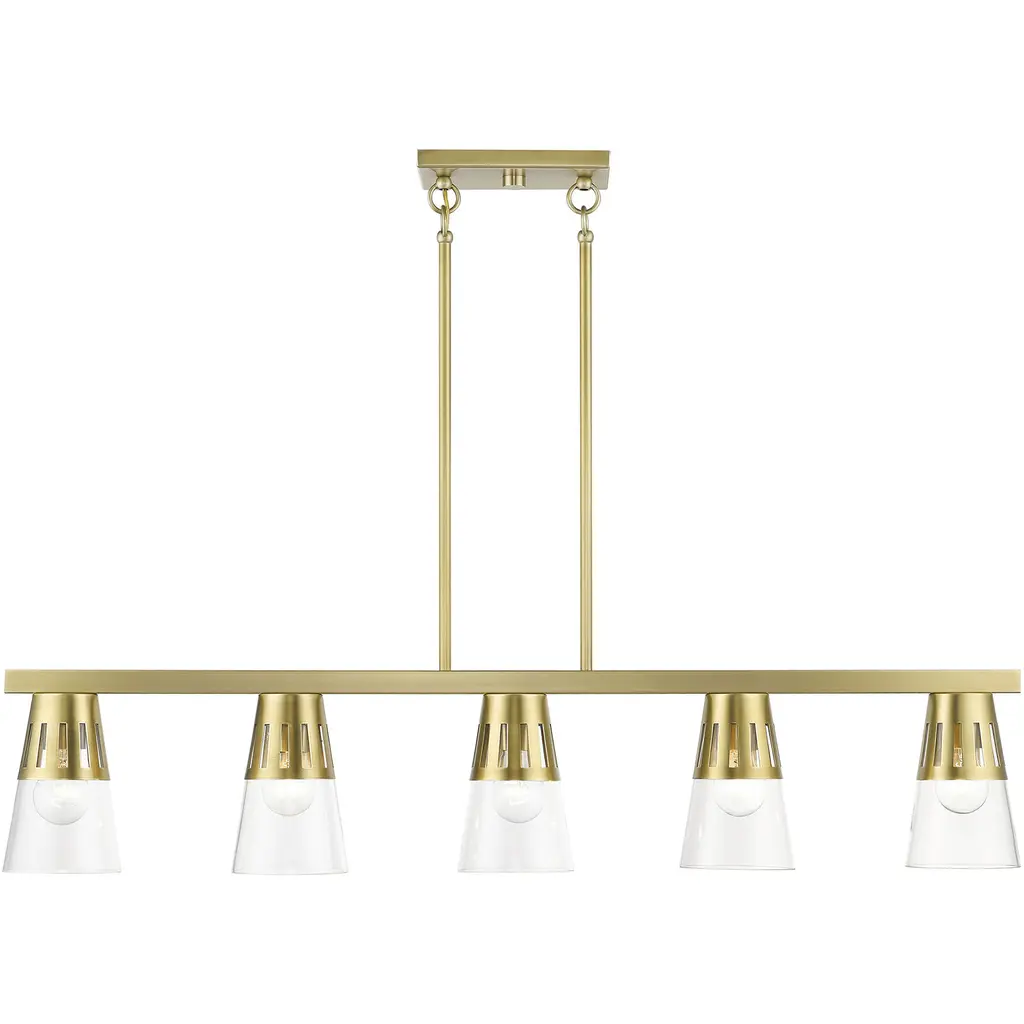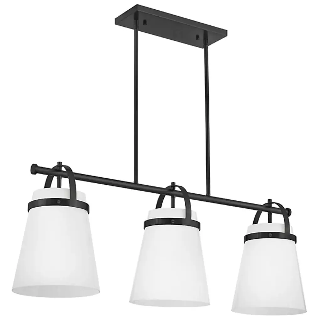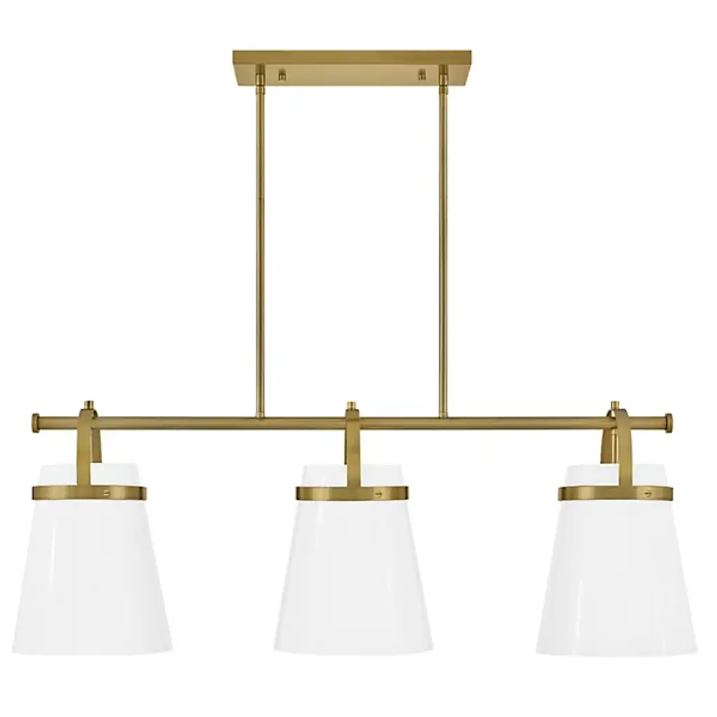The Tori Linear Suspension presents one’s kitchen or dining spaces with delightful containers brimming with cozy illumination. This transitional piece looks sharp in the room as it hangs with a series of tidy rods. The arching hardware of the shades top the crossbar in lovely accents. These accents catch the eyes against the pristine white hue of the shades. The tapered drum shades display a soft warmth on their surfaces. They filter and rain down an even stream of illumination.
