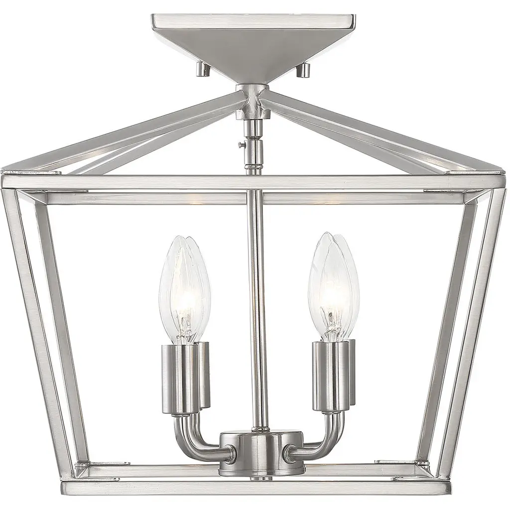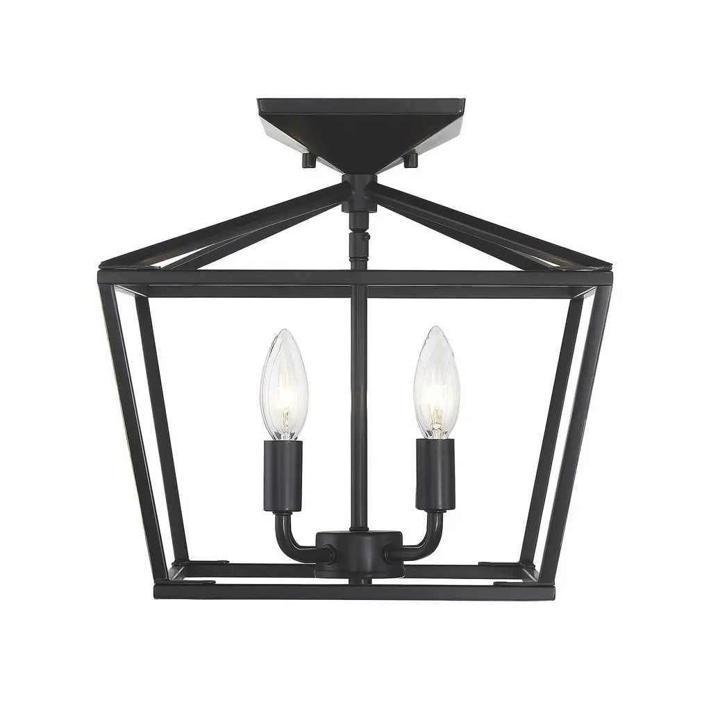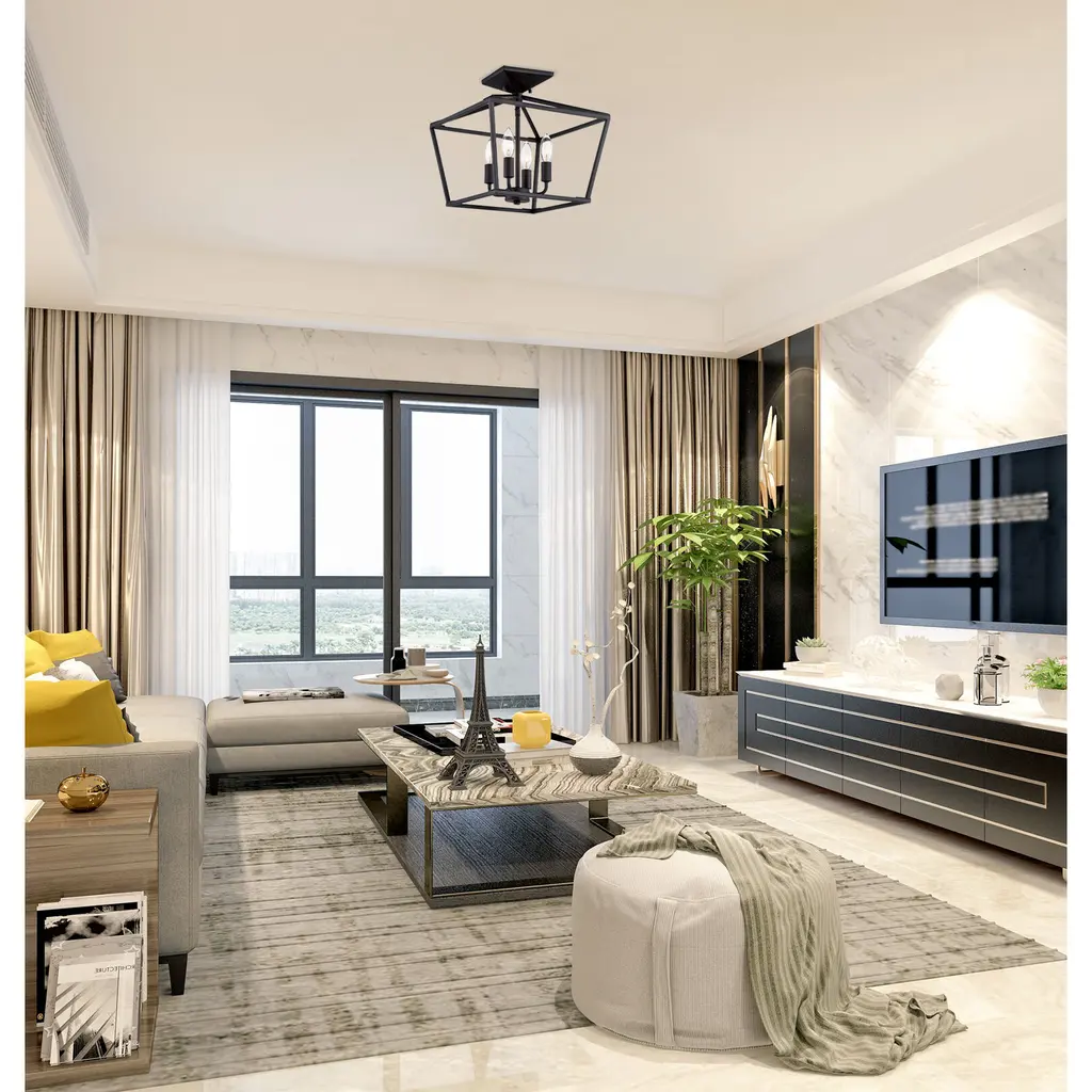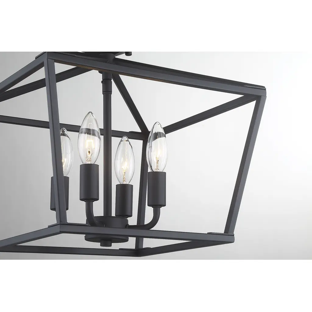 When you have a traditional aesthetic and want to inject a sense of modernism, choose this Townsend ceiling fixture. Its a classic lantern style with the familiar vintage appeal of colonial or old English candle fixtures, but the open geometric frame and matte black finish create a delightful contemporary twist. This timeless quality blends very well with your traditional, transitional, bohemian, contemporary or modern farmhouse decor. Four lights within the open framework have metal candle covers and hold 60W candelabra size bulbs. The fixture is 13" wide and 13" high with a semi-flush mounting, making a superb fit for your dining room, kitchen, living room, entryway, bedroom, closet, family room, office, stairway or great room.