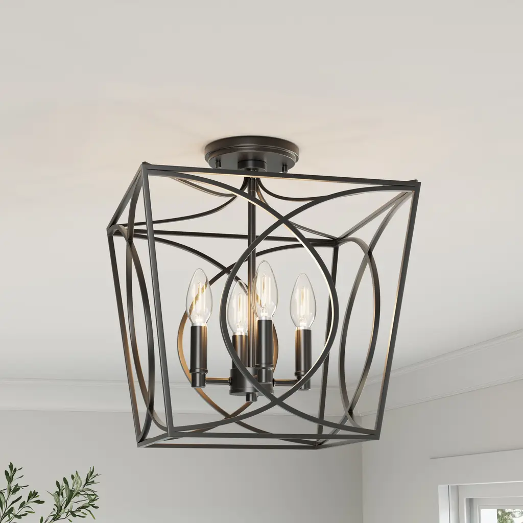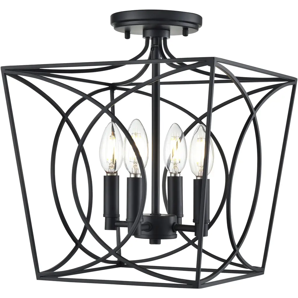 Tracy 4 Light 12 Inch Matte Black Semi-Flush Mount Ceiling Light