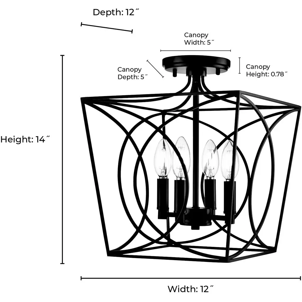 Tracy 4 Light 12 Inch Painted Modern Gold Semi-Flush Mount Ceiling Light