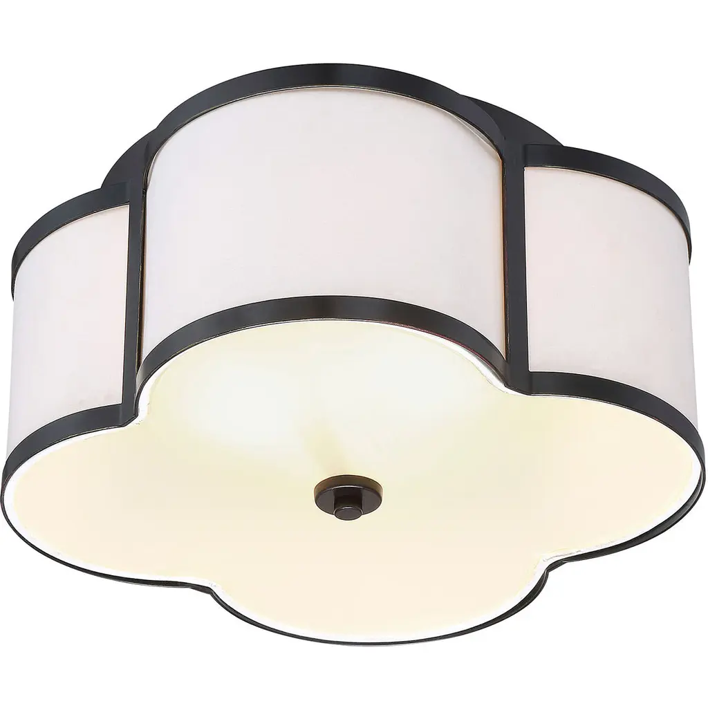 Add glamour to any ceiling with this ceiling semi-flush mount Its stylish quatrefoil shape is finished in Classic Bronze and paired with a crisp white fabric shade for bright, comfortable light. 8" in height and 16" in width.