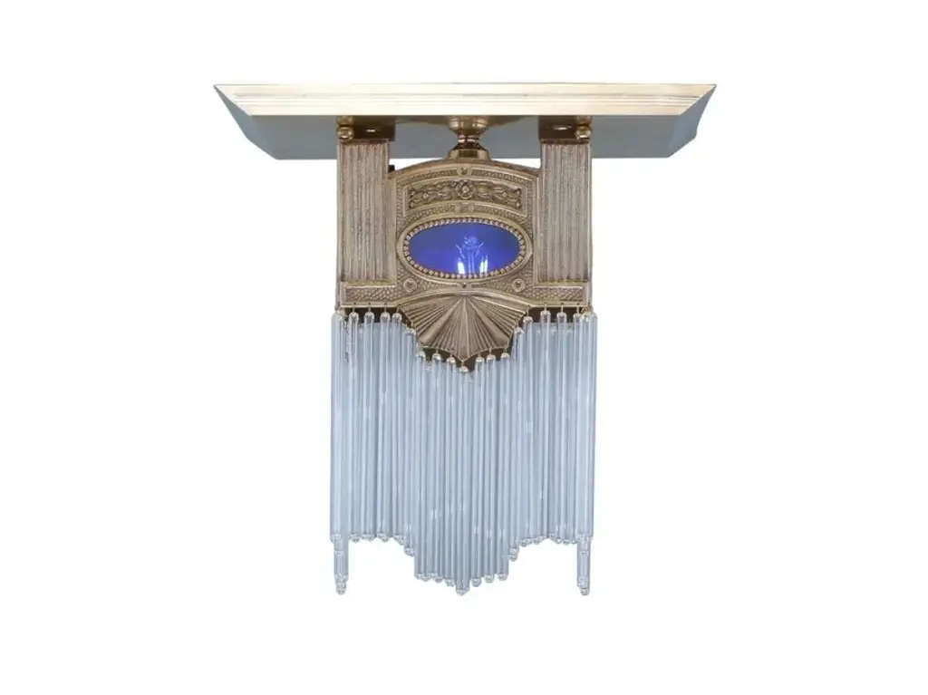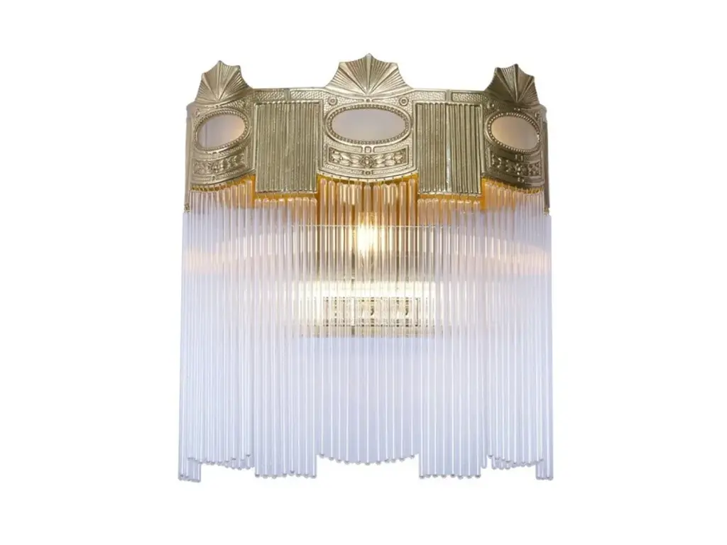 Triest is a ceiling lamp made of brass available in different finishes.Finishes: Antique, Shiny brass, Matt brass, Shiny nickel, Matt nickelCapacity: max. 1x75W E27This marvellous collection could be a perfect set lighting for a fairy tale feature. All lamps are richly adorned, some even feature a coloured glass decor. The glass tubes are not only used as diffusers,but they can be found on the structure itself as well, thus giving the lamp even more magic.