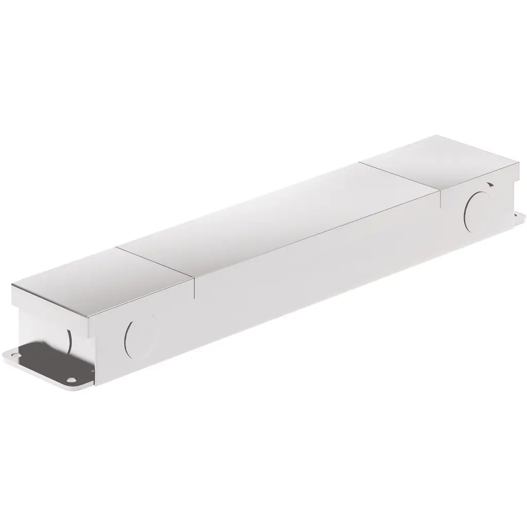 The Trilo remote driver power options include a fully enclosed 48V class 2 driver with compatible dimming (see specifications). The remote driver includes end feed with field cuttable 96-in wire and conduit. Must be installed at end of the Trilo track system.