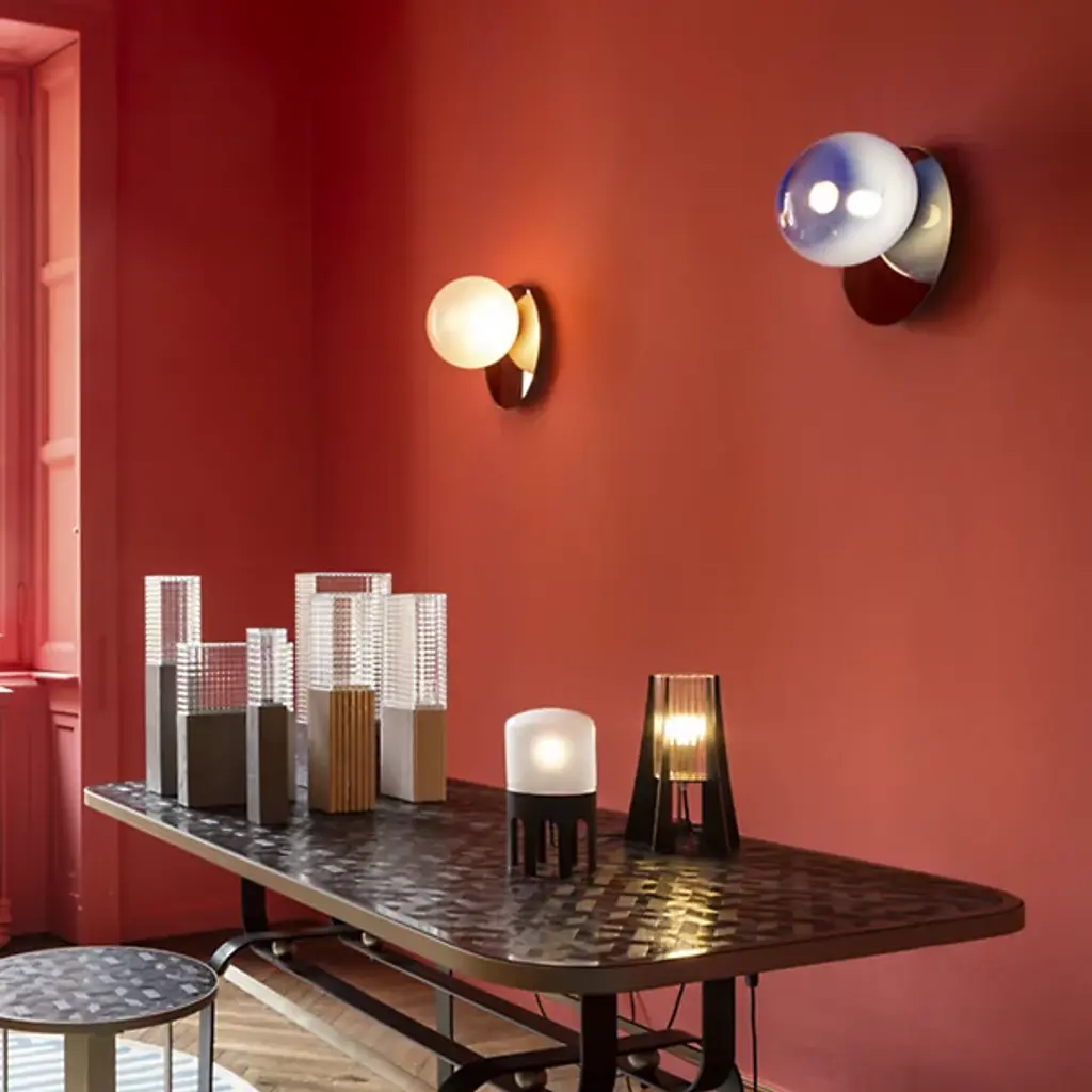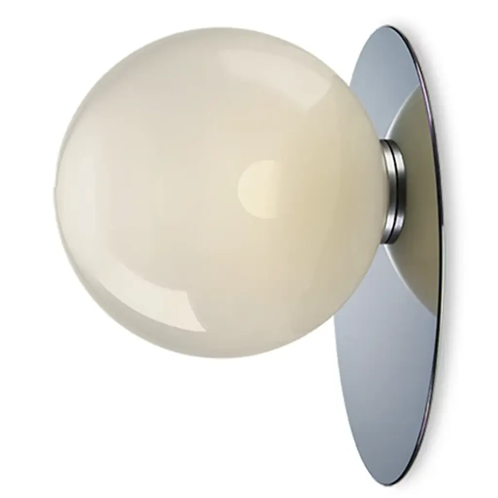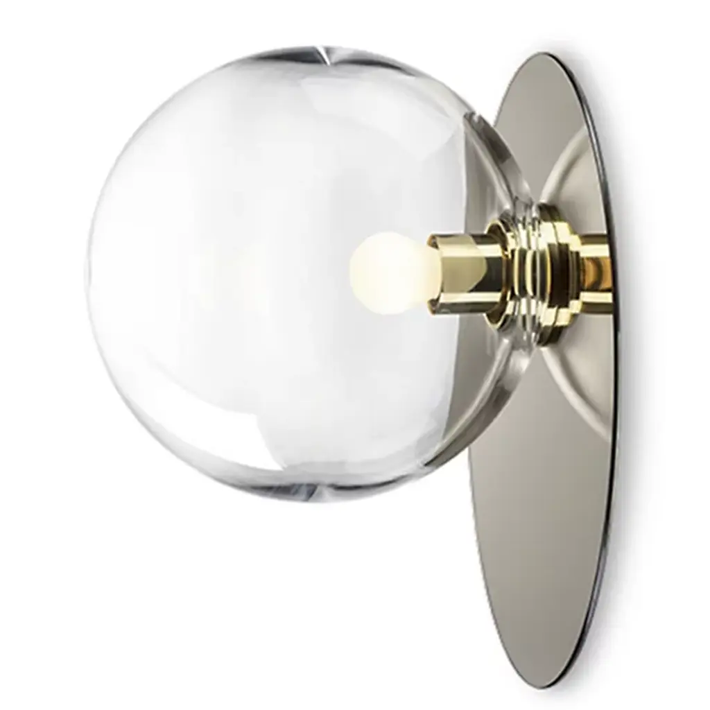 Every detail of the Umbra Wall and Ceiling Light embodies the relation of geometric objects and their shadows with sophisticated elegance. Its metal plate derives from the perfectly elliptical shadow cast by a crystal ball and mirrors the refined color scheme of the mouth-blown piece. Traditional glassmaking techniques ensure that each piece from this collection is truly an original. Its combination of perfect details, elemental shapes, and delicate colors makes Umbra a true jewel for your interiors.