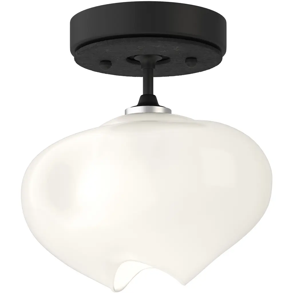 The Ume Semi-Flush features a single, exquisite glass shade that has the distinction of being glossy on the outside, yet frosted on the inside, creating a unique appearance, combined with its botanical shape. The Ume frosted glass, like its namesake Japanese plum blossom, has an elegant and sophisticated aesthetic and extends from the straight arm of this semi-flush mount. Available in all standard finishes.