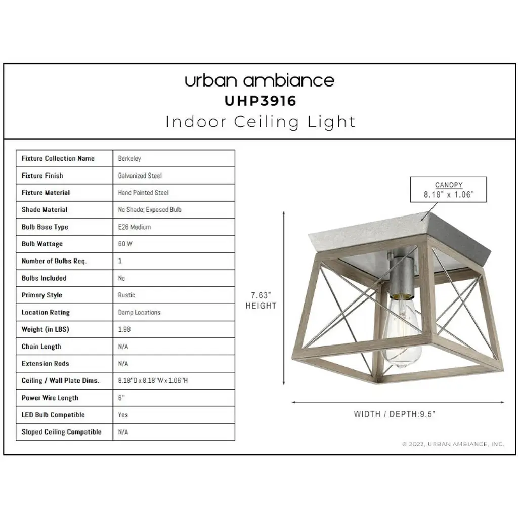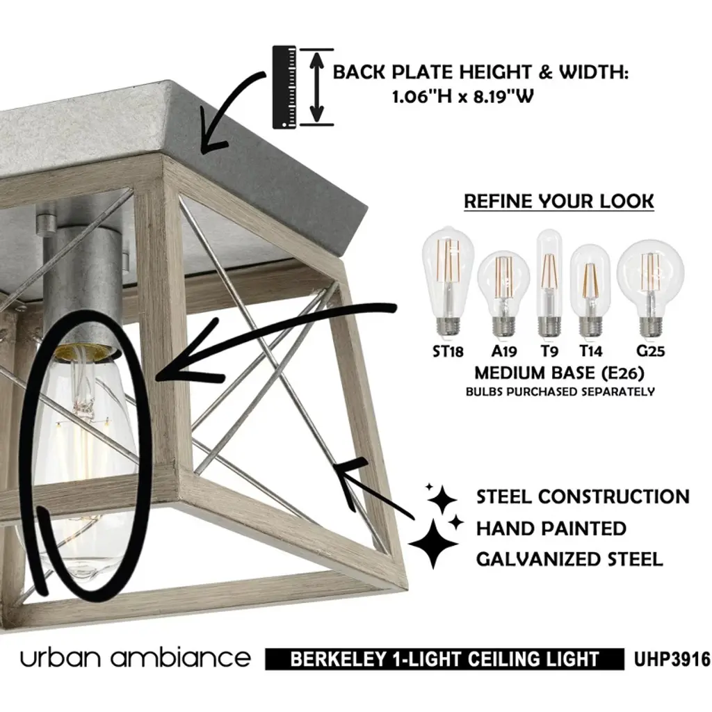 Urban Ambiance Luxury Industrial Ceiling Light 7.625''h X 9.5''w, Galvanized Steel Finish, Berkeley Collection, Uhp3916