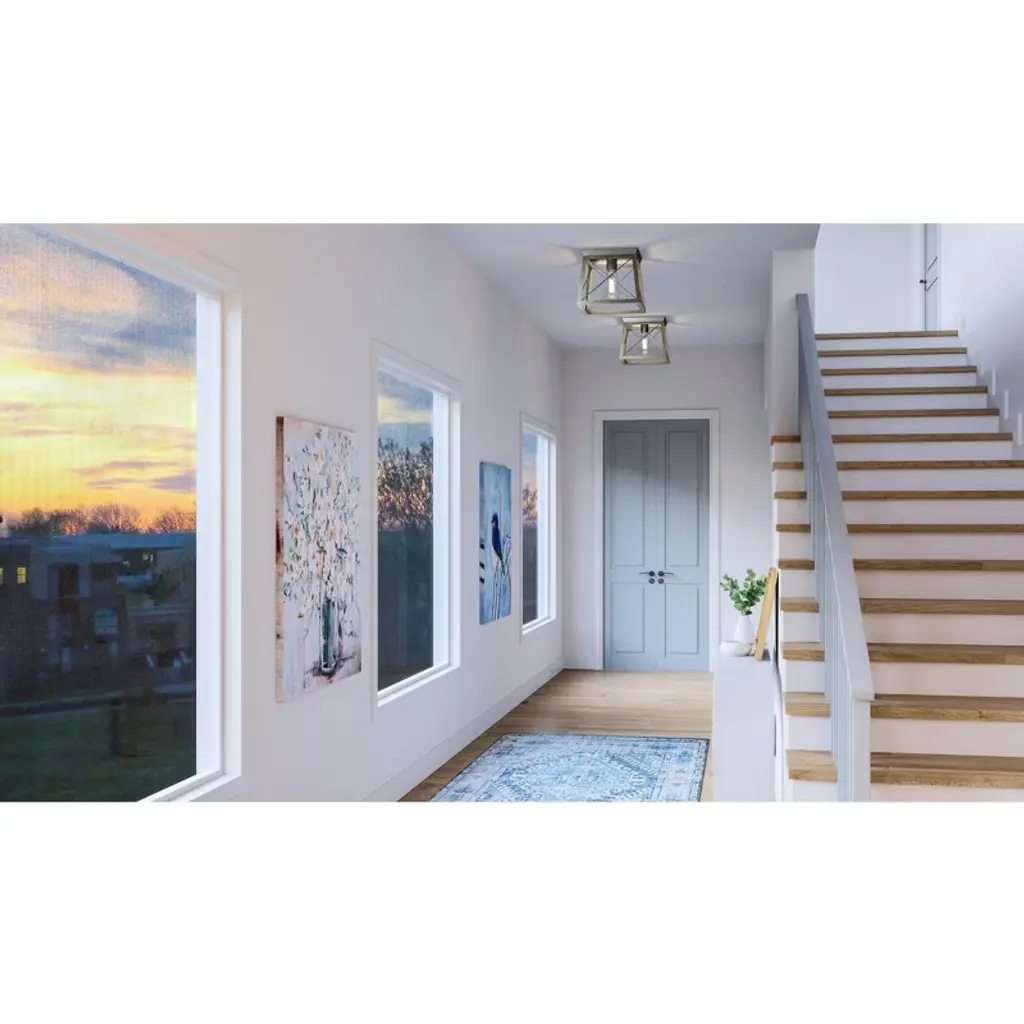The Berkeley collection brings a farmhouse demeanor to any space thanks to the rustic pattern woven into the design. The geometric construction leverages multiple tones to emphasize the rustic flair alongside the vintage undertones. A thin tapered rectangular plate starts off the design before transitioning into a wood-stained trapezoid framework. The sleek open framework features crosshatch wires around all the open faces but the base. The thin wires add a contrasting design element perfect for matching the encased socket sleeves, and against that dark-hued detail, the vintage-style bulbs stand out beautifully.
