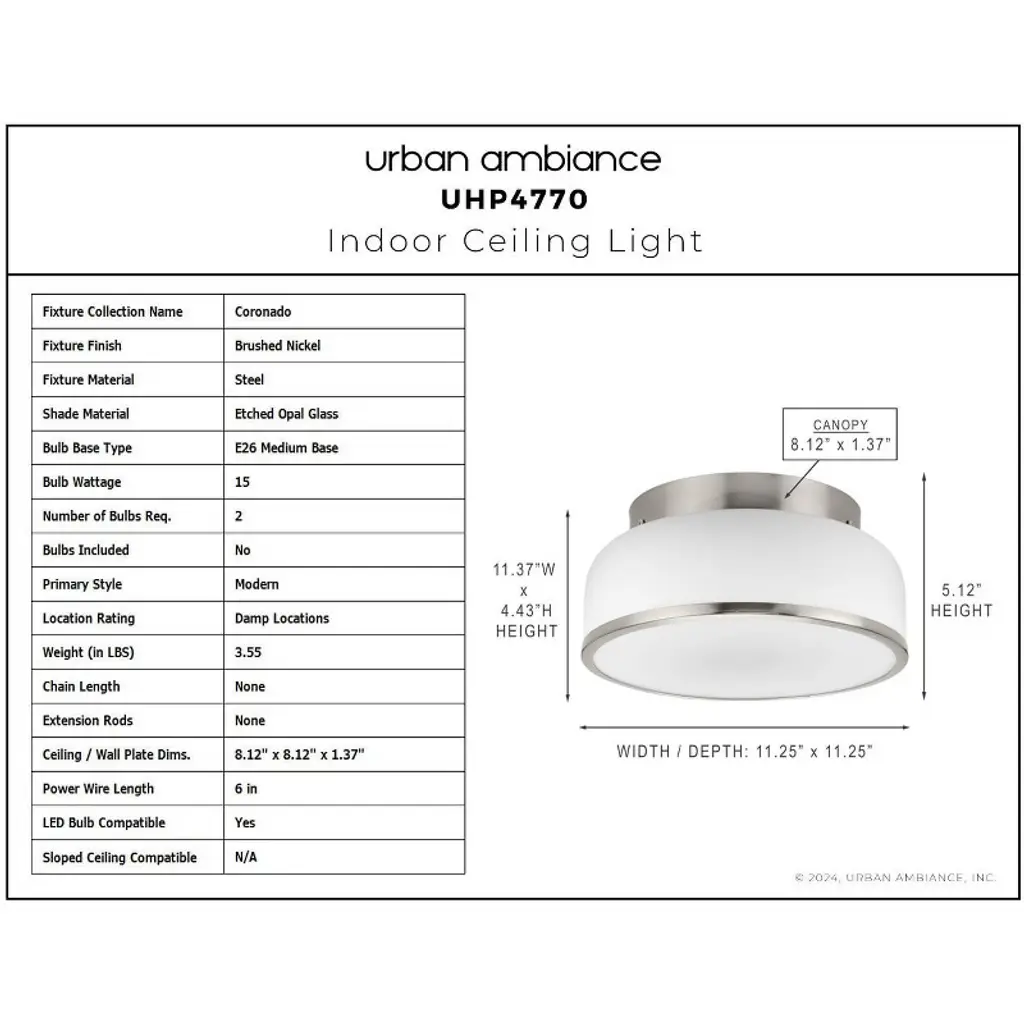 Urban Ambiance Luxury Modern Indoor Ceiling Light, 5-1/8''h X 11-1/4"w X 11-1/4''d, Brushed Nickel Finish, Uhp4770