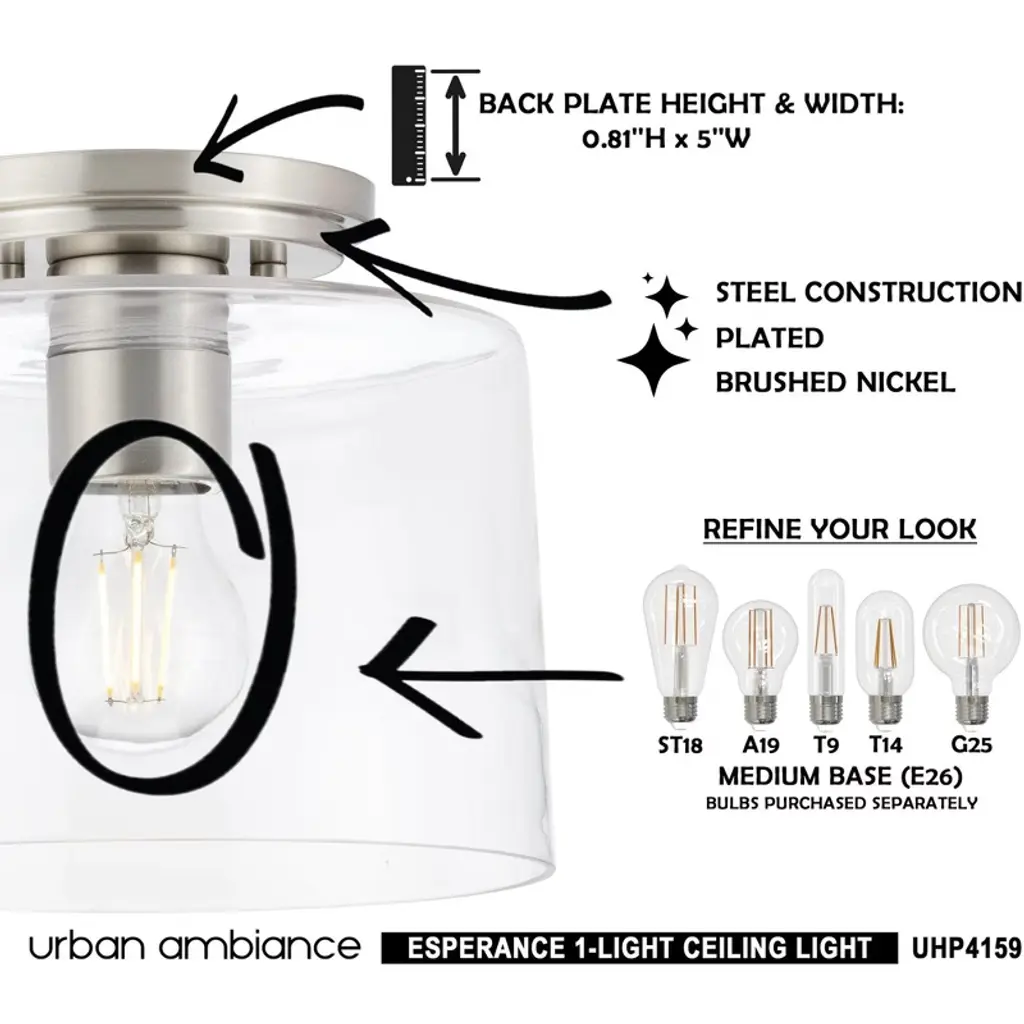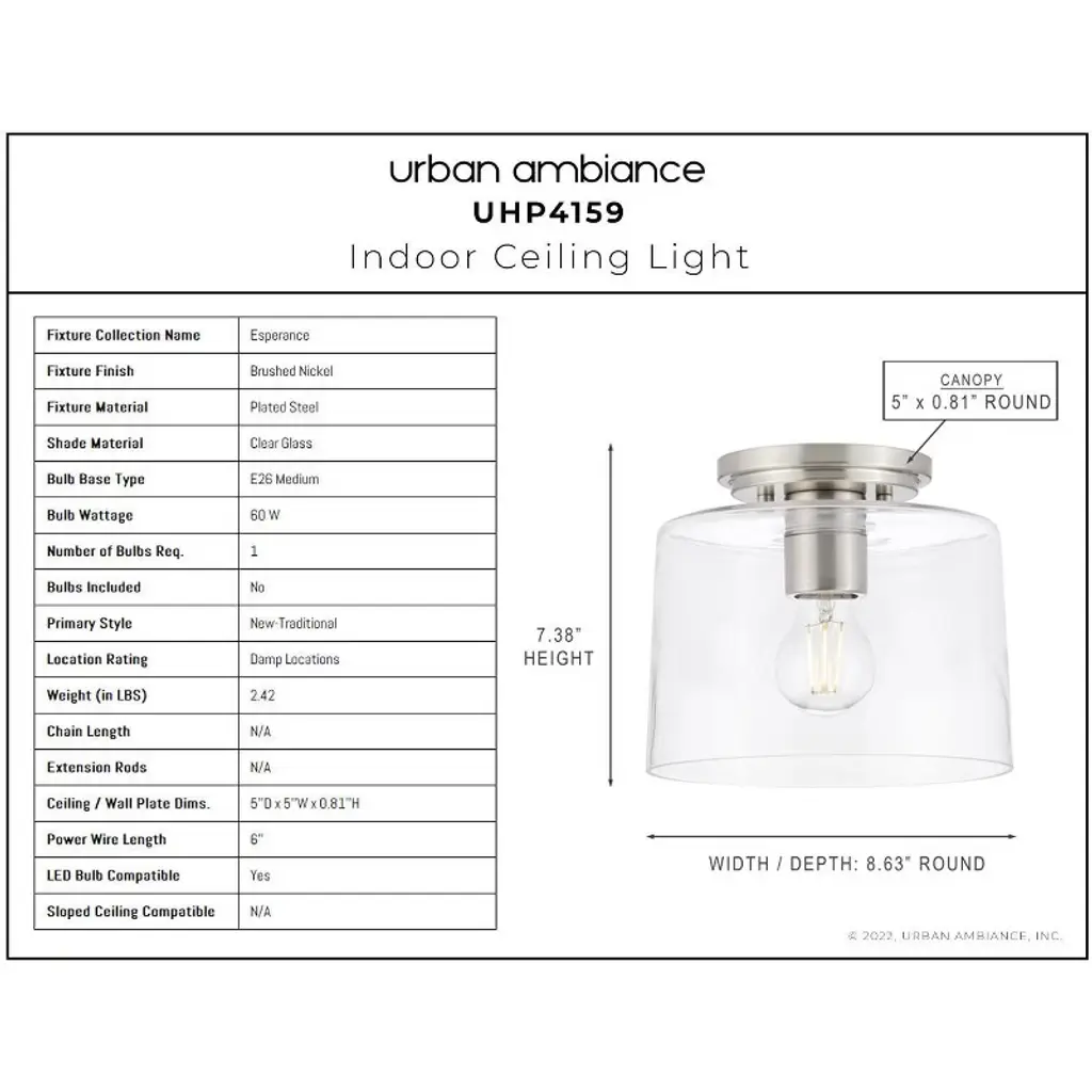 Urban Ambiance Luxury Traditional Ceiling Light 7.375''h X 8.625''w, Brushed Nickel Finish, Esperance Collection, Uhp4159