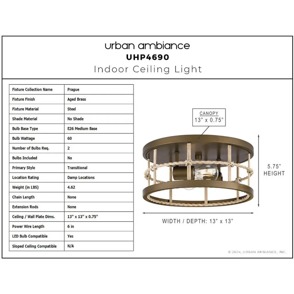 Urban Ambiance Luxury Transitional Indoor Ceiling Light, 5-3/4''h X 13"w X 13''d, Aged Brass Finish, Uhp4690