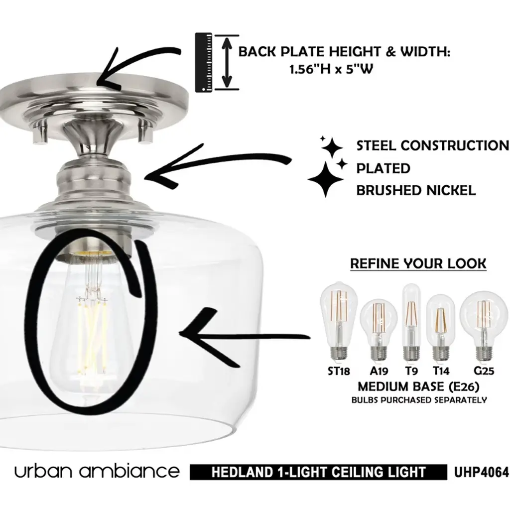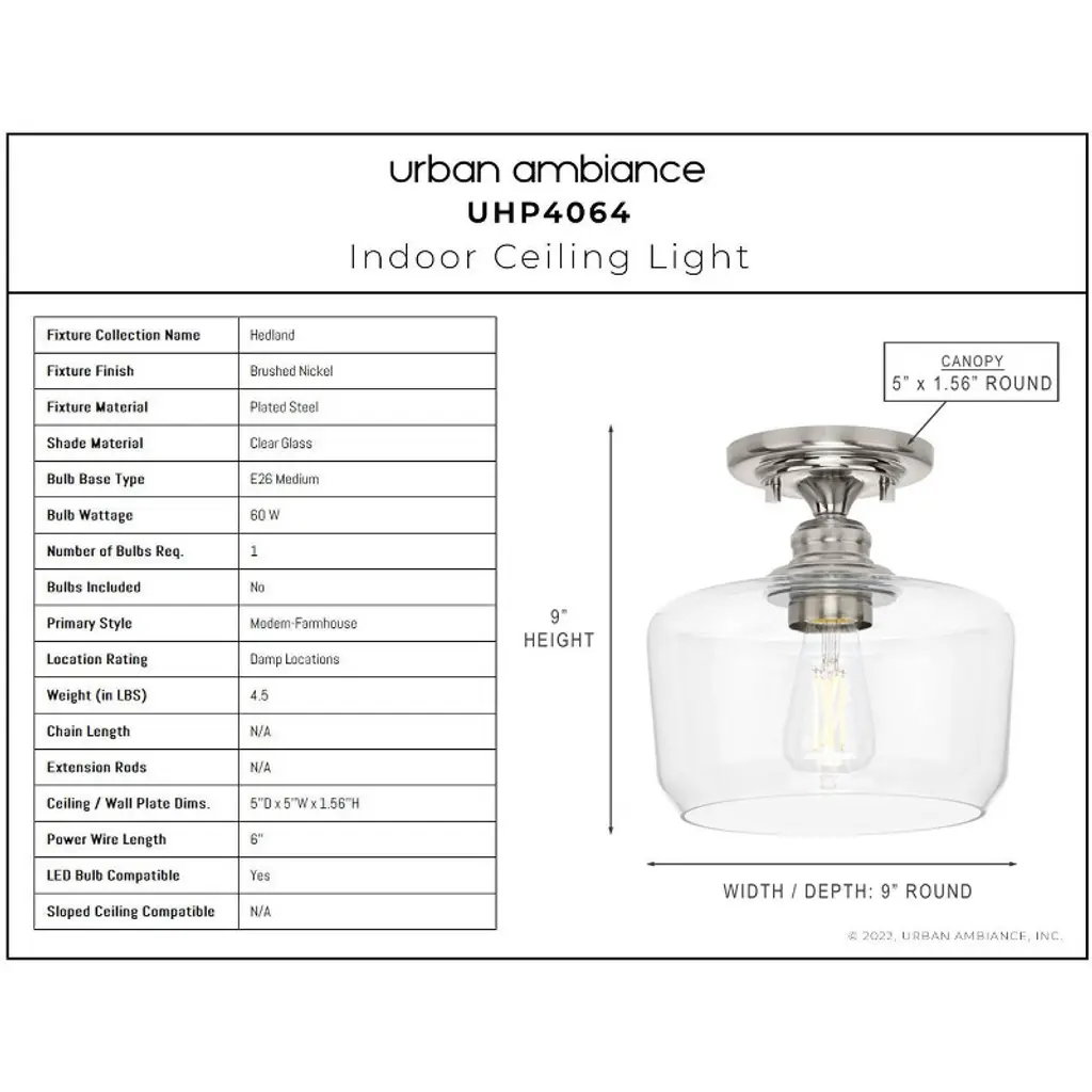 Urban Ambiance Luxury Vintage Ceiling Light 9''h X 9''w, Brushed Nickel Finish, Hedland Collection, Uhp4064