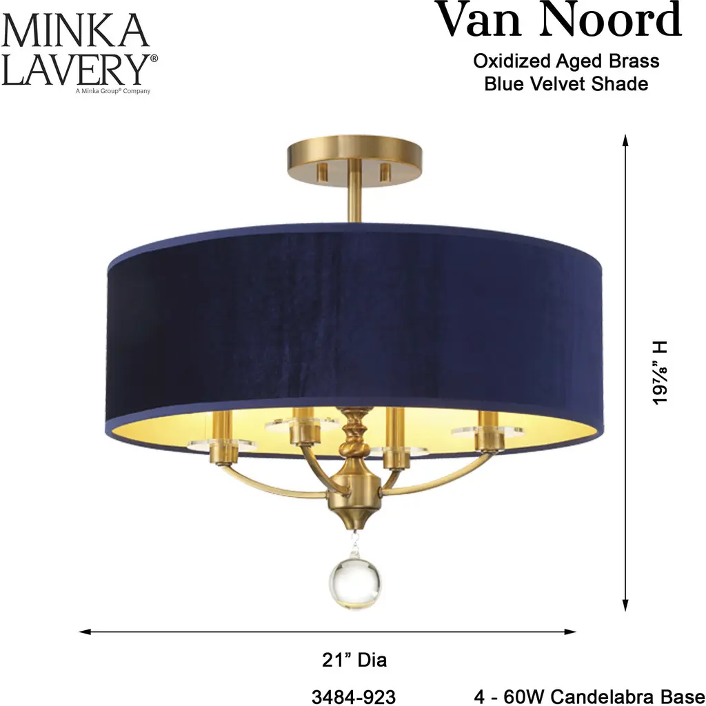 This 4 light Semi-Flush from the Van Noord collection by Minka-Lavery will enhance your home with a perfect mix of form and function. The features include a Oxidized Aged Brass finish applied by experts. This item qualifies for free shipping!