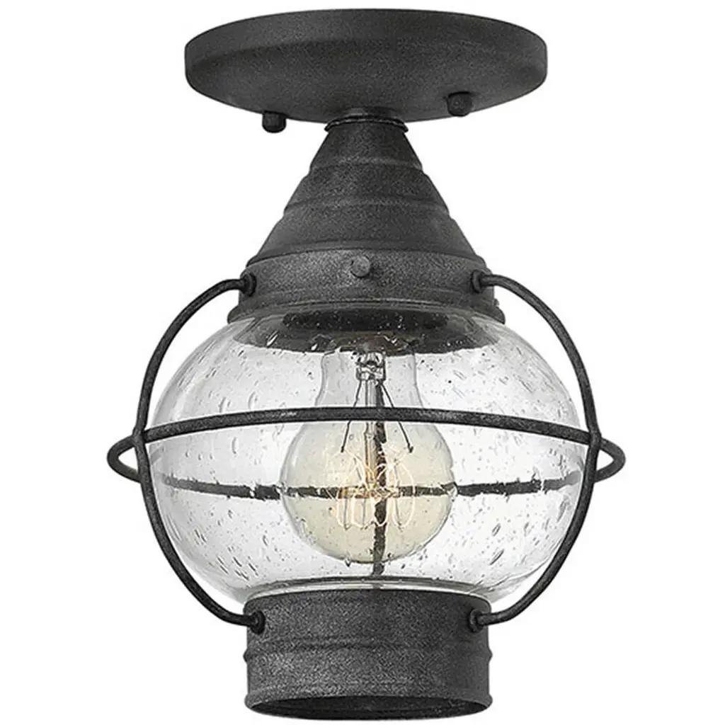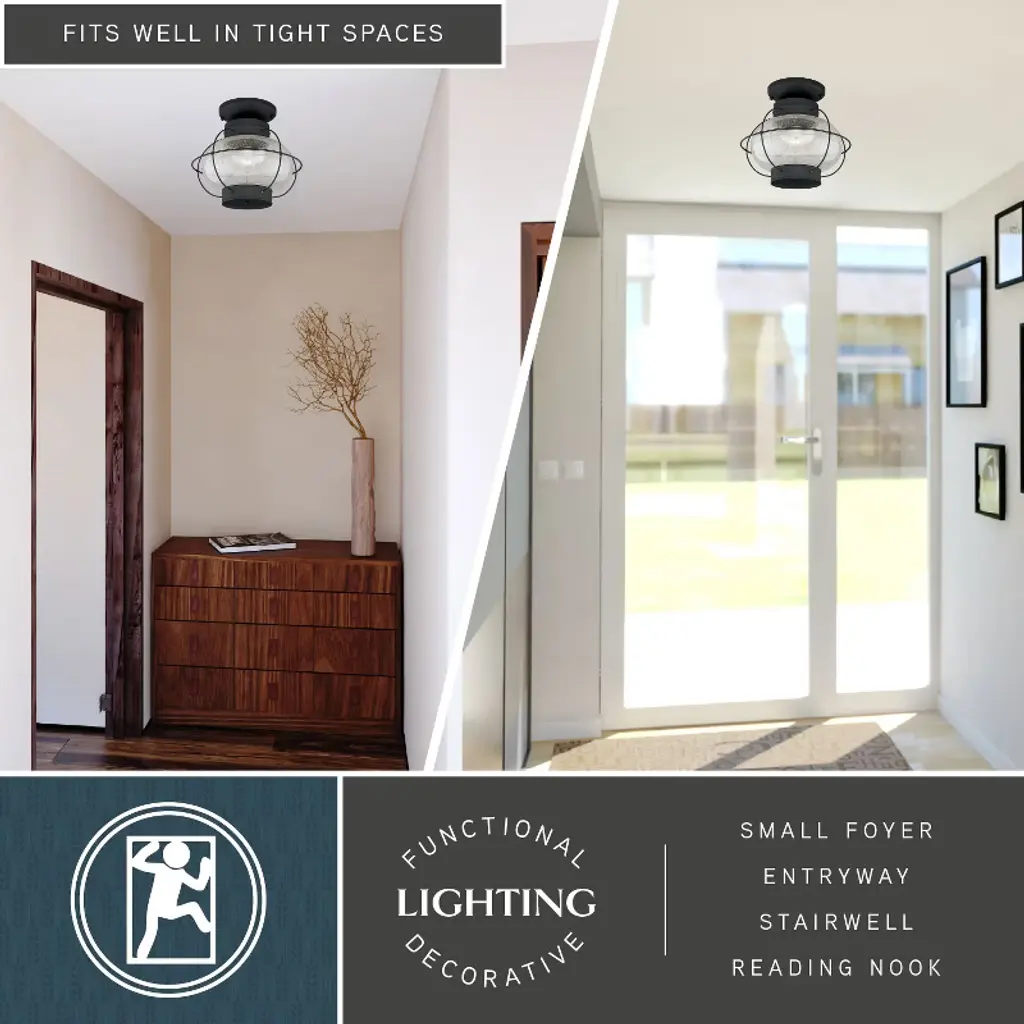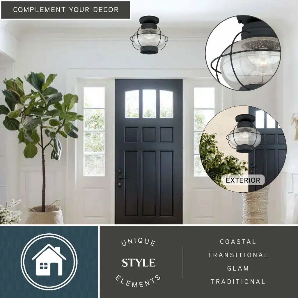 Vaxcel Chatham Black Coastal Globe Outdoor Flush Mount Ceiling Light Clear Glass