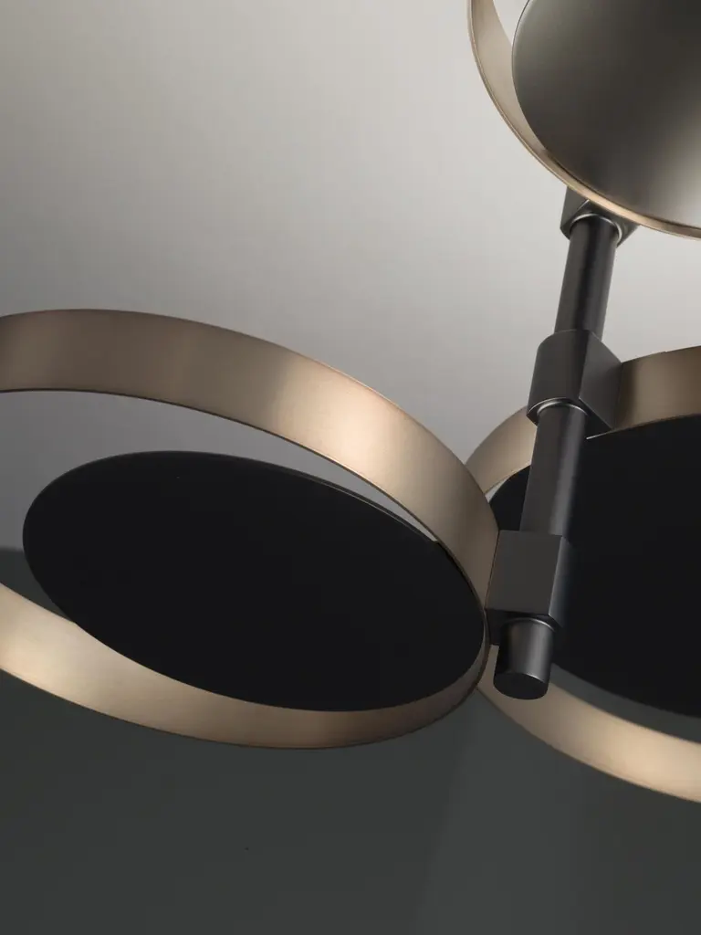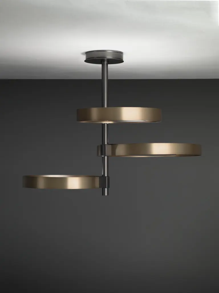 Ceiling lamp with indirect light. Light burnished brass rings and matte black nickel structure.Location: InteriorLight source: 3 × 17W 1500lm 2700°K CRI90Voltage: 110 - 120 V / 220 - 240 VFrequency: 50 - 60 HzDimmable: YesMounting: Ceiling.