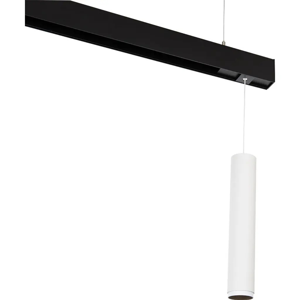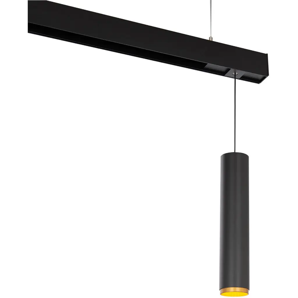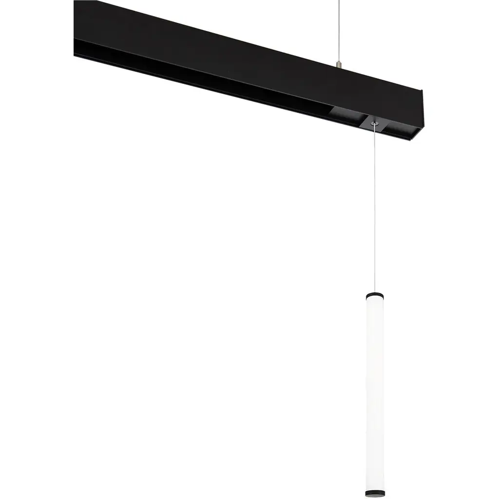 Title 24 compliant, a technical, high-performing pendant that offers dynamic height adjustment and beam shaping from 15 - 45. Available in Black or White cylinders, choose from 2 sizes and 3 finishes for the retractable accent collar.