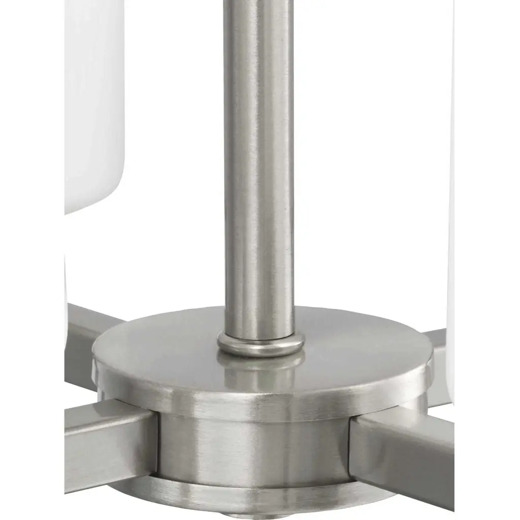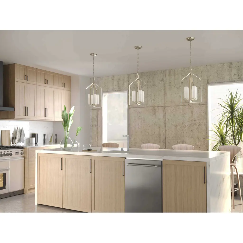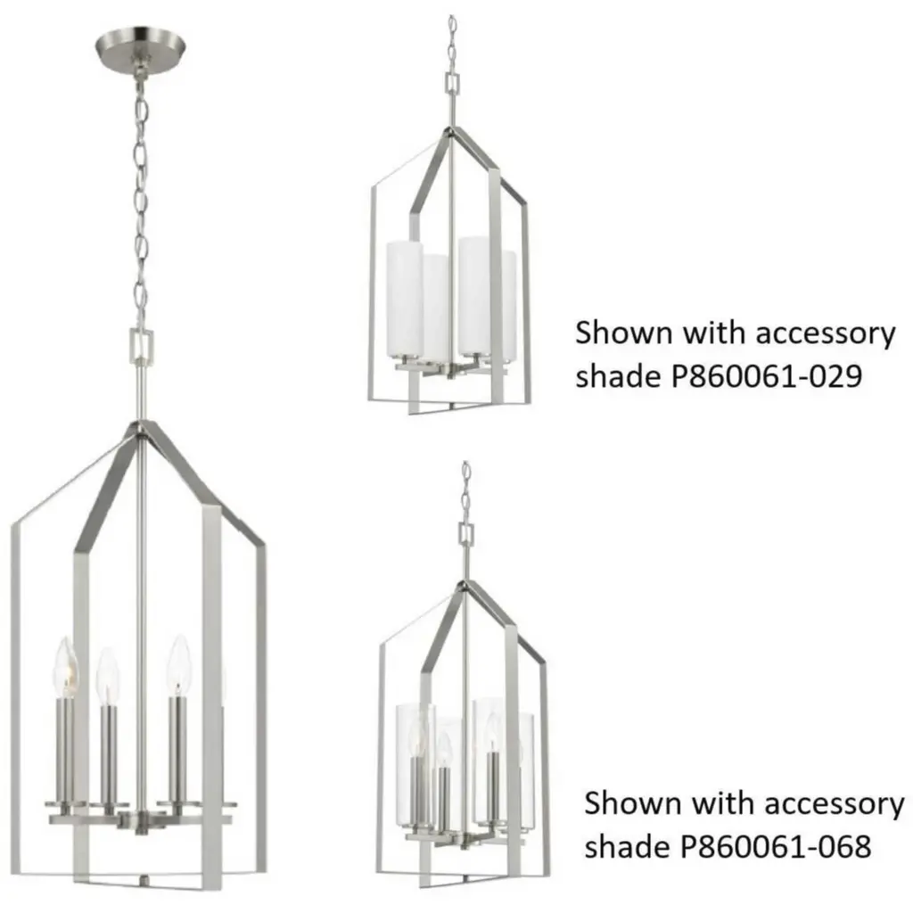 Elegantly extended, the Vertex foyer light is composed of angular forms to create a bold design that perfectly complements halls, foyers and kitchens in modern interiors. Its distinctive silhouette is coated in a brushed nickel finish. A clear glass shade offers bright illumination to spaces below. Customize the light's hanging height to your ceiling using the Included 48 in. of chain for a variety of ceiling heights and sloped ceilings.