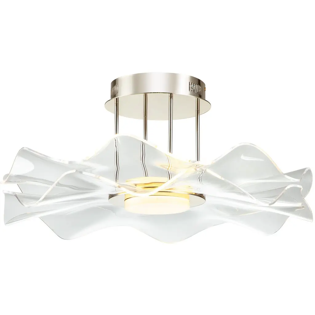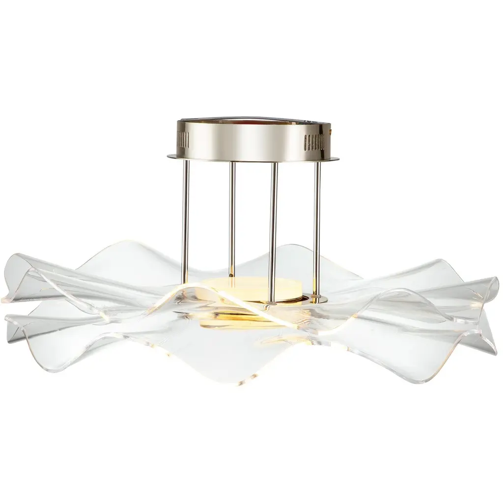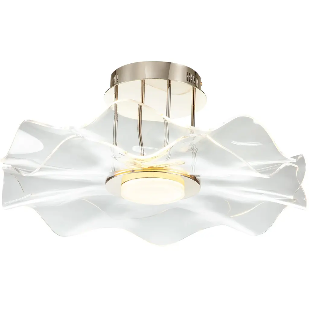 Bring modern functionality into your home with the Golden Lighting Vetrina Integrated LED Semi-Flush Mount in Light Gold. Featuring a luxurious acrylic shade and a beautiful light gold frame, it creates a warm and inviting ambiance. The clear acrylic shade offers brilliant, unobstructed light that brightens up any room, enhancing the visual appeal of your decor. The understated light gold finish, achieved through a durable electroplating process, adds a refined touch to your interior. Perfect for dry locations, this semi-flush mount blends style and practicality, making it ideal for entryways, bedrooms, and living areas with mid-height ceilings. With dimensions of 23.38"W x 10.38"H x 23.38"D, it includes integrated LED technology that provides 2286 lumens at a warm 3000K color temperature. Experience the perfect balance of elegance and innovative lighting with this stunning fixture.