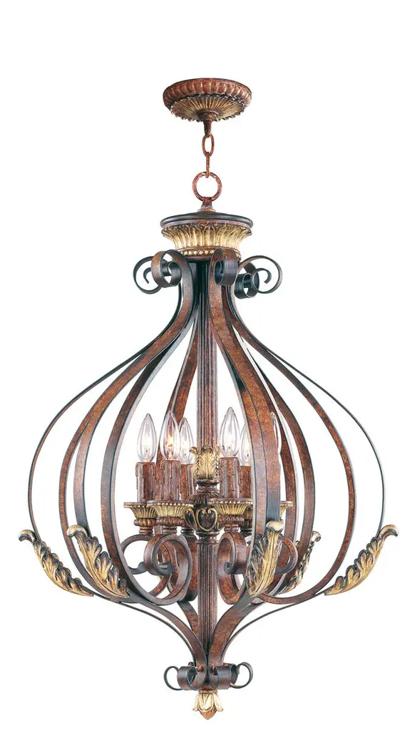 Villa Verona 6 Light 24 Inch Verona Bronze With Aged Gold Leaf Accents Foyer Ceiling Light