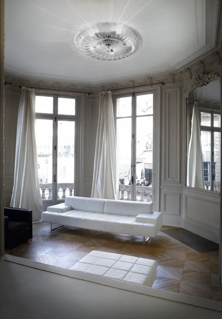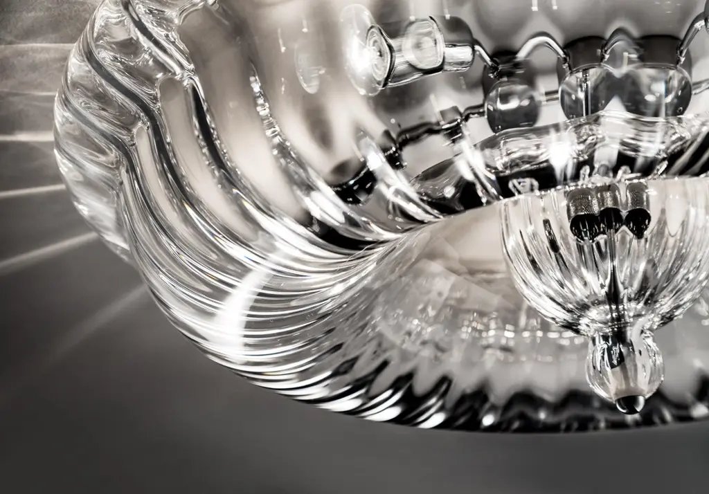 The idea behind the collection Novecento is to reduce the traditional Murano chandelier to its most recognizable element, its profile. This shape is then reconstructed in a 360º glass outline, which keeps the same characteristics of the original design and is therefore suitable for both Classic and contemporary ambiences.Light source:5x40W E12.