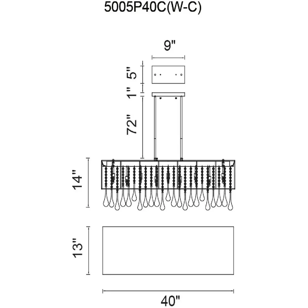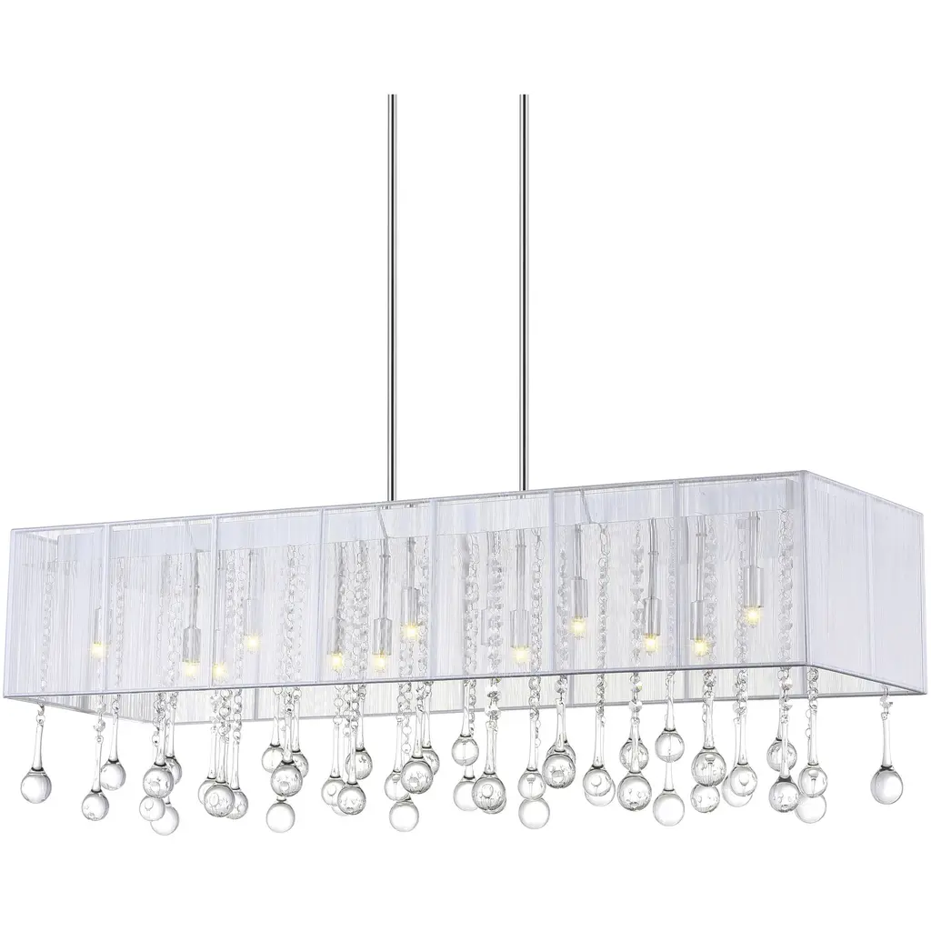Let the Water Drop 14 Light Chandelier (Clear Crystal) lend a special atmosphere to your space. This glistening light fixture is designed with a 40 inch rectangular shade in white or silver. Dangling underneath are clear crystal droplets that radiate light. This is the exact finishing touch a modern but sterile space needs.