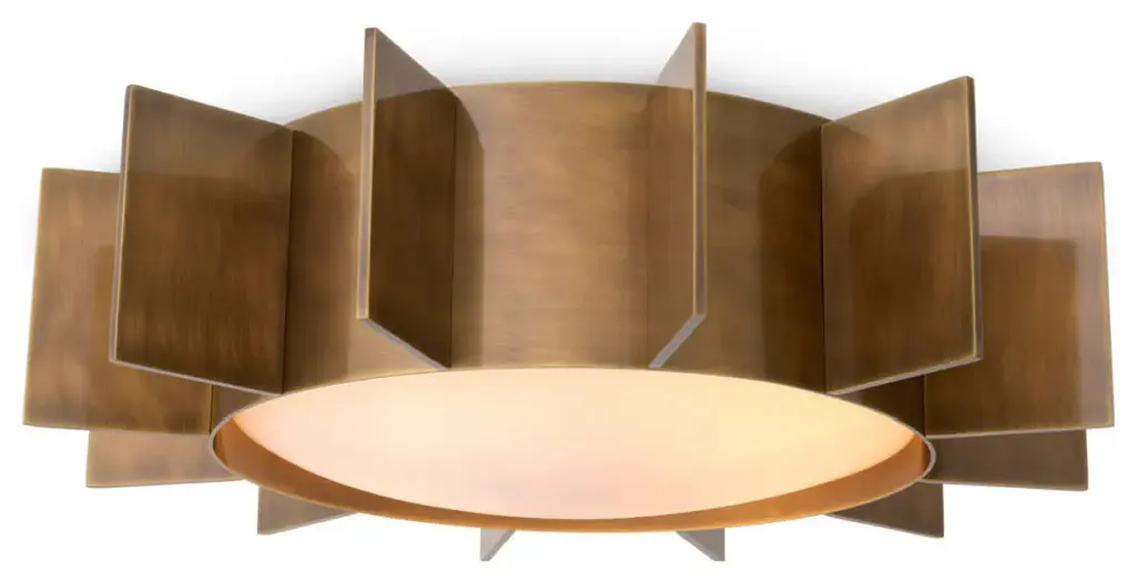 Introduce a touch of vintage elegance with the Eichholtz Mario Ceiling Lamp. Its classic brass finish and white glass come together to cast a gentle illumination, making it a perfect piece in your living space or bedroom.Dia24 x H6 in: Weight 28lbsMaterial: Steel, GlassMax: 8W - E27