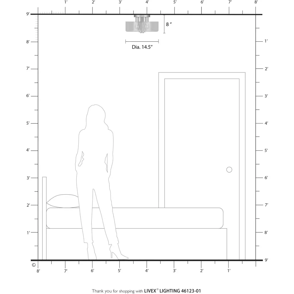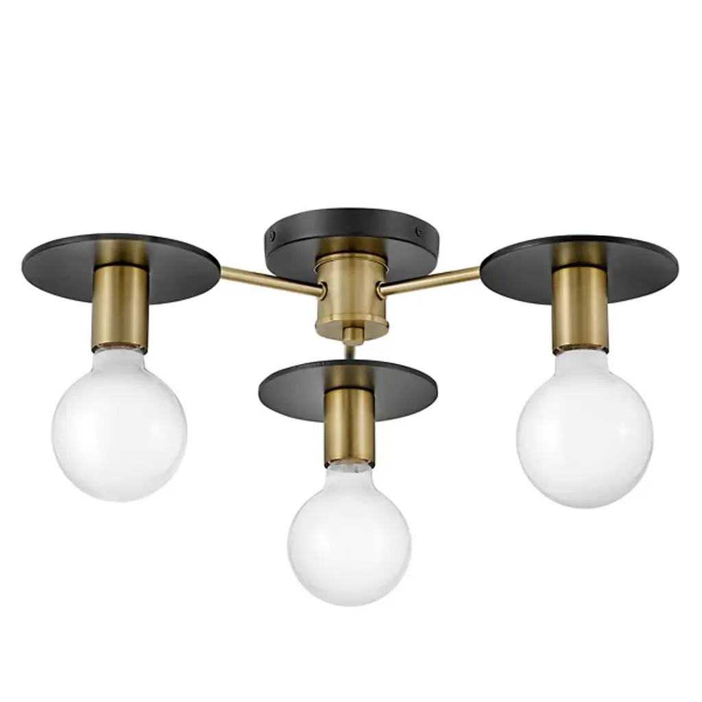Whitworth 3 Light 14.5 Inch Antique Brass Semi-Flush Ceiling Light