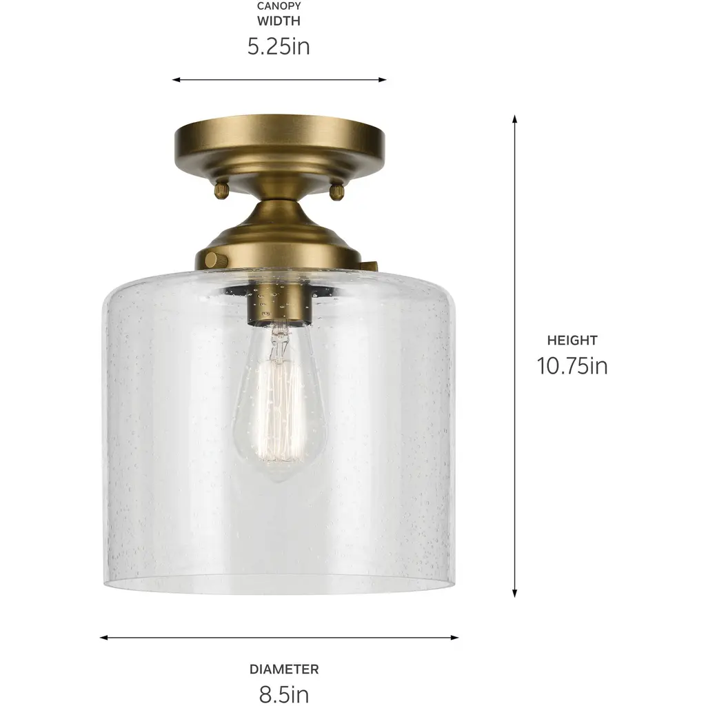 Winslow 10.75" 1-Light Semi Flush with Clear Seeded Glass in Natural Brass