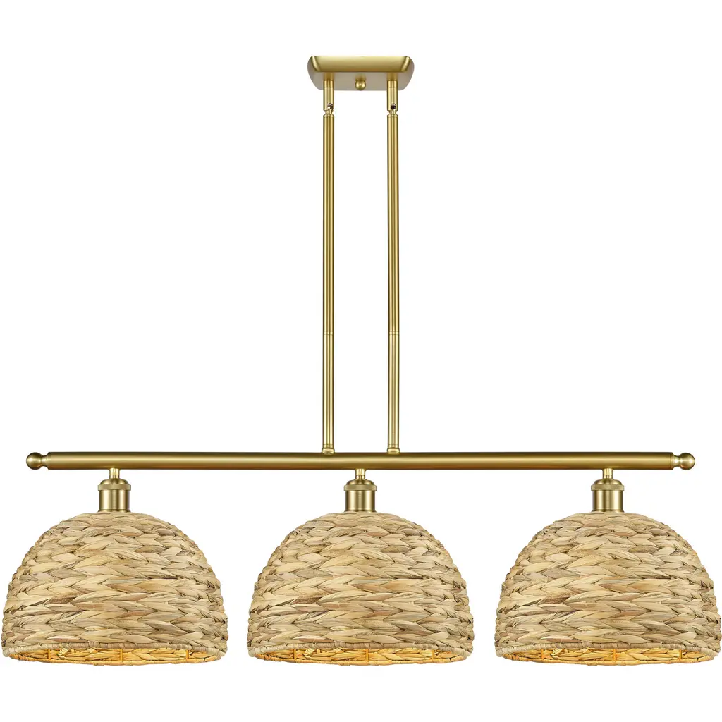 Woven Rattan - 3 Light 12" Stem Hung Island Pendant - Brushed Brass Finish - Natural Shade