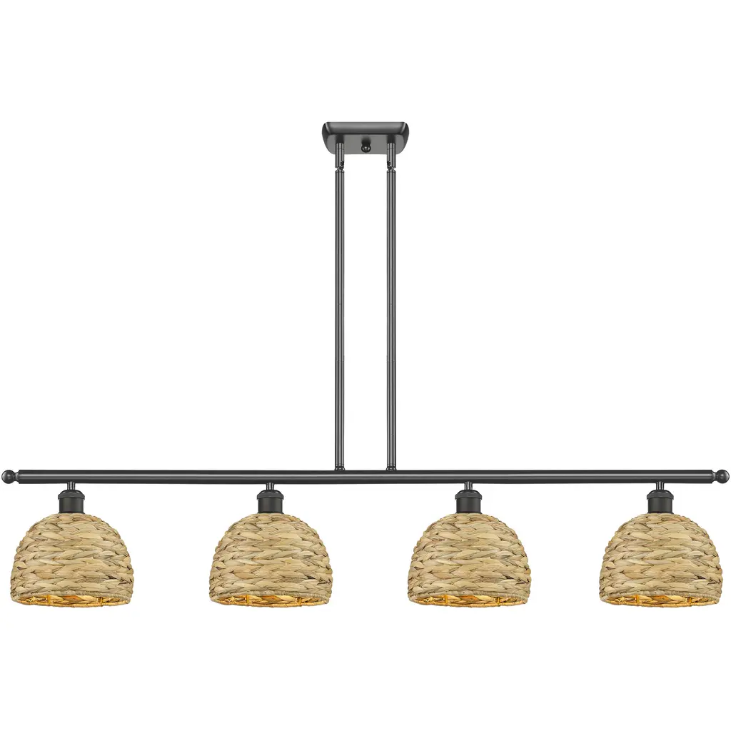 Woven Rattan - 4 Light 50" Stem Hung Island Light - Oil Rubbed Bronze Finish - Natural Shade