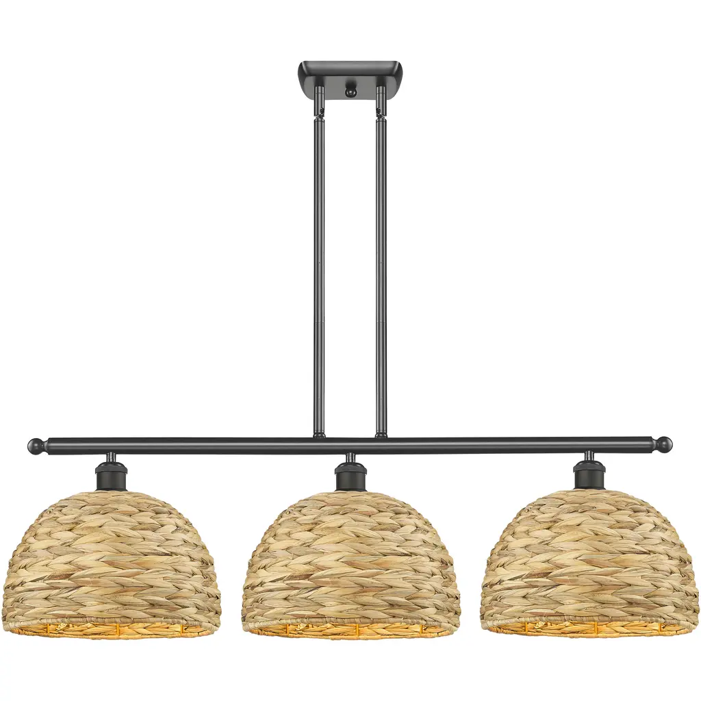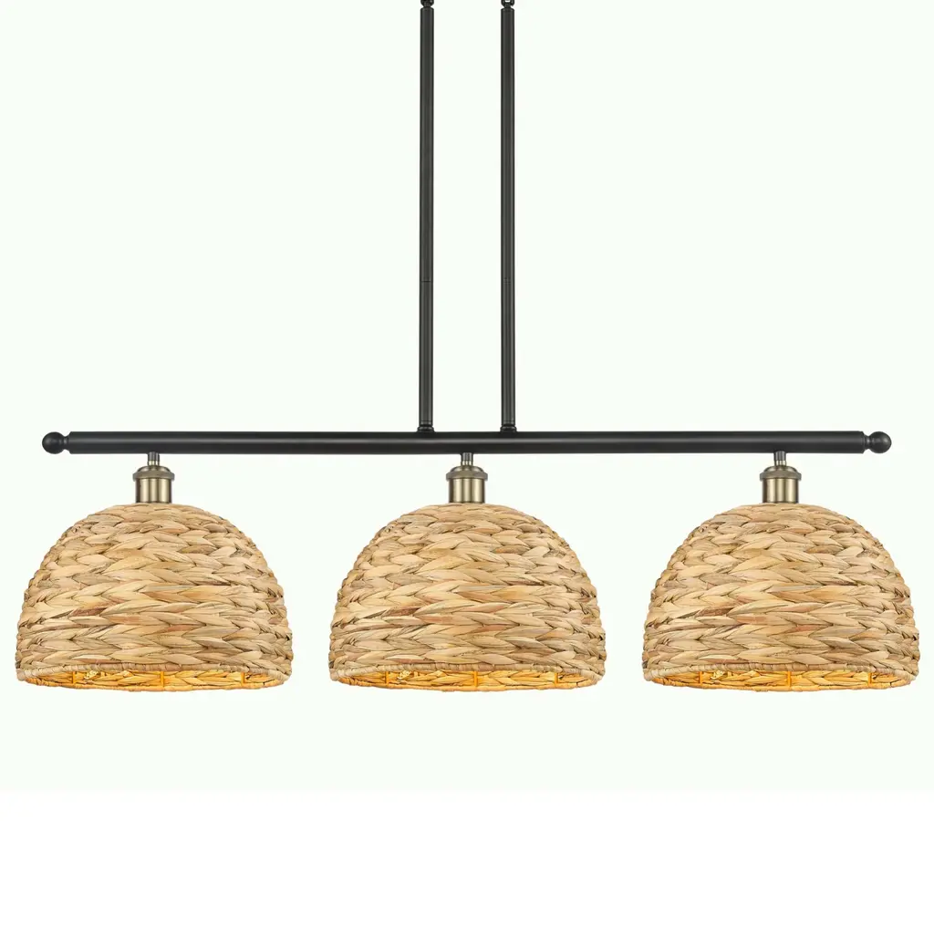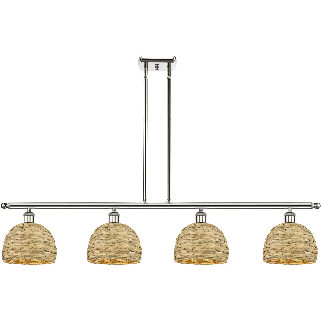Woven Rattan - 4 Light 48" Stem Hung Island Light - Polished Chrome Finish - Natural Shade