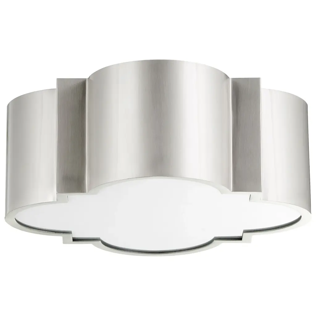 Enhance the look of your elegant living space with this gorgeous clover-shaped, three-light ceiling mount. The satin nickel base on this fixture creates a captivating framework. The light source is cloaked in stunning opal glass shade, allowing this light to offer a beautiful, diffused output.