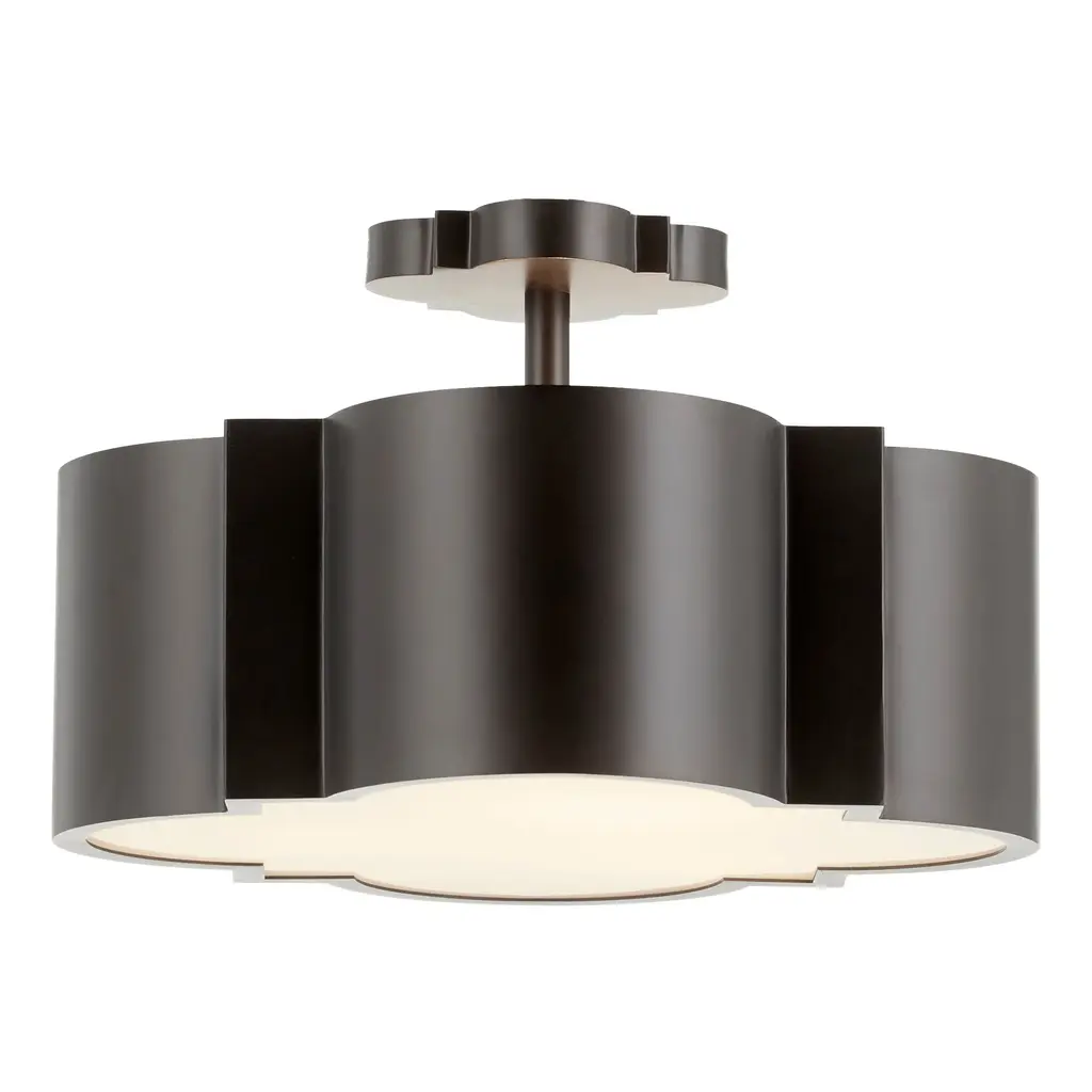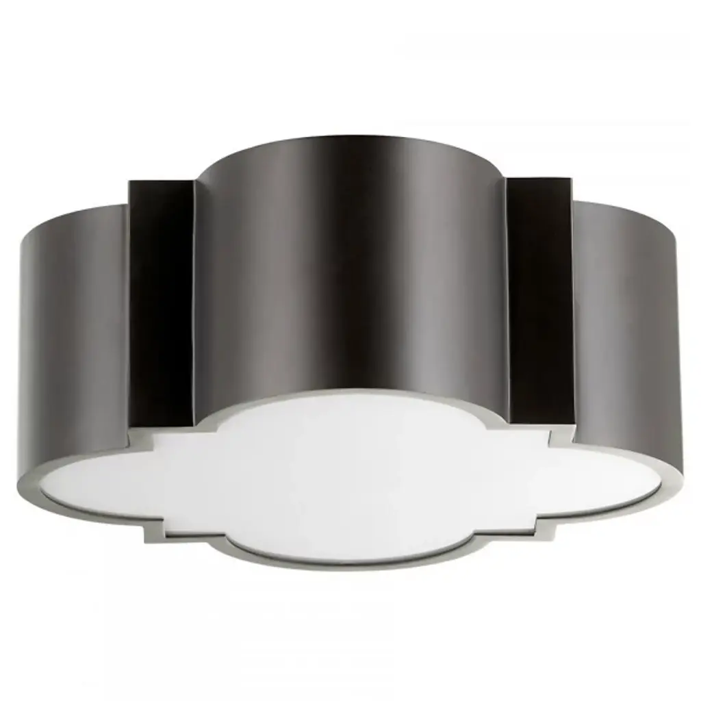 Enhance the look of your elegant living space with this gorgeous clover-shaped, three-light ceiling mount. The noir base on this fixture creates a captivating framework. The light source is cloaked in stunning opal glass shade, allowing this light to offer a beautiful, diffused output.