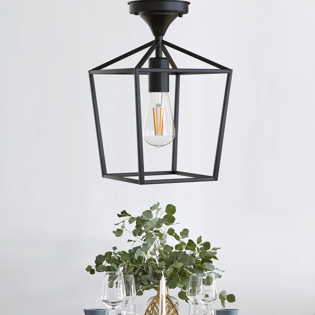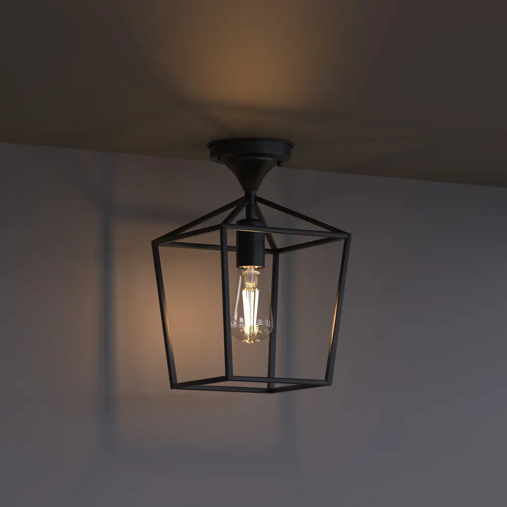 Yansun 1-Light Black Semi Flush Mount,vintage Ceiling Light Fixture For Living Room Dining Room Kitchen Entryway - 7.3 In. - 7.3 In. - Black