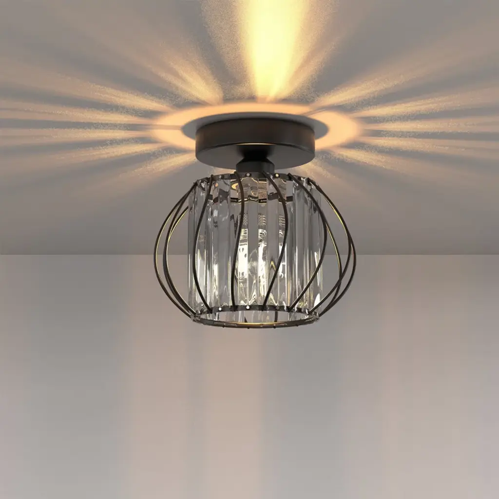 The new small black crystal ceiling lamp is a luxury style light. This semi-flush mount chandelier light seamlessly marries elegance with a touch of rustic charm, creating a modern and inviting ambiance in your home.(Bulb not included) Features: