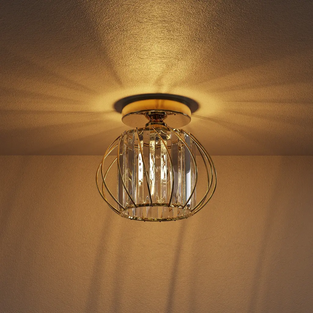 Yansun 7.09 In. 1-Light Modern Black Semi Flush Mount Ceiling Light Fixture With Clear Crystal Cage Shade - 7.09 In. - Gold