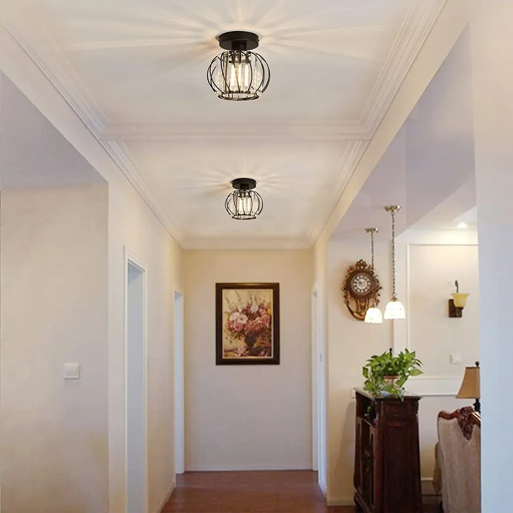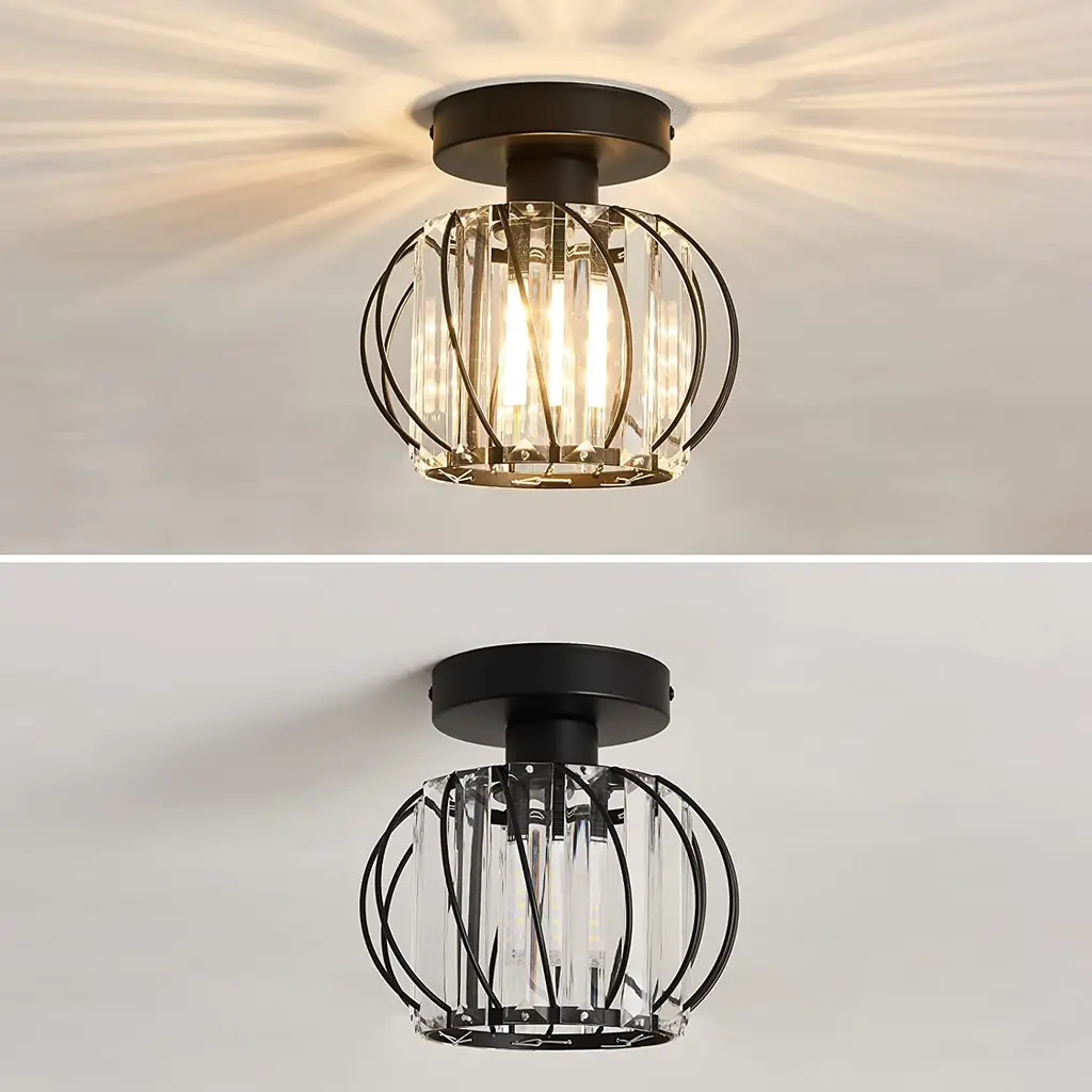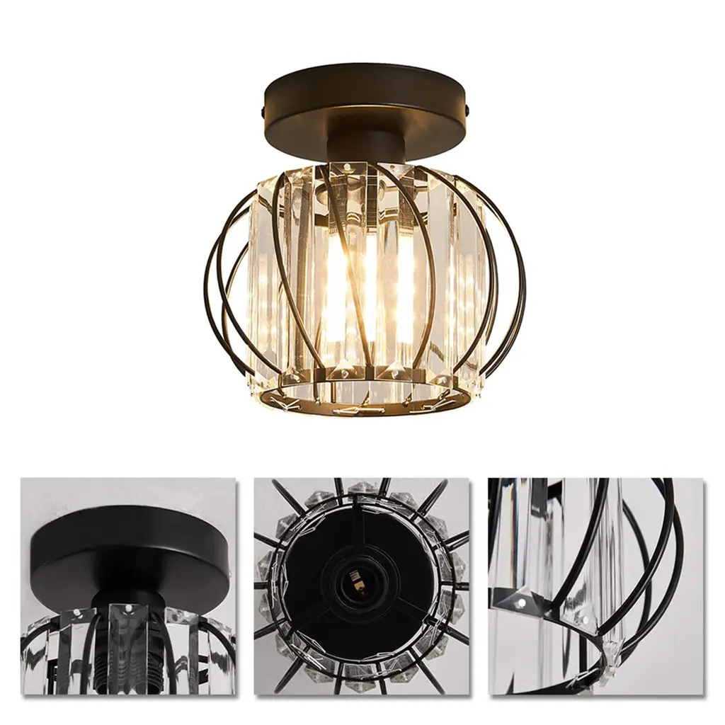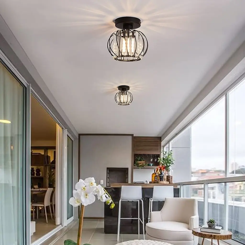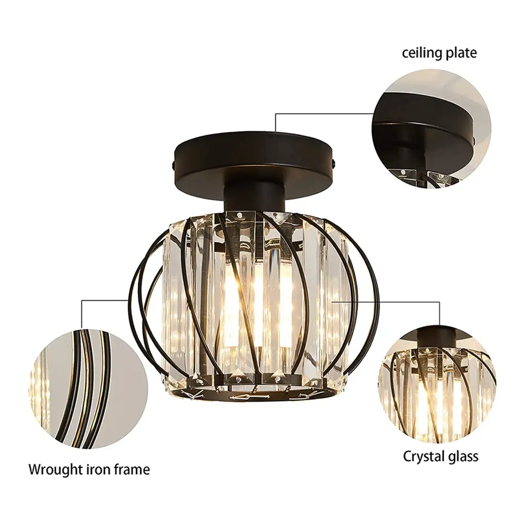 The new small black crystal ceiling lamp is a luxury style light. This semi-flush mount chandelier light seamlessly marries elegance with a touch of rustic charm, creating a modern and inviting ambiance in your home.(Bulb not included) Features: