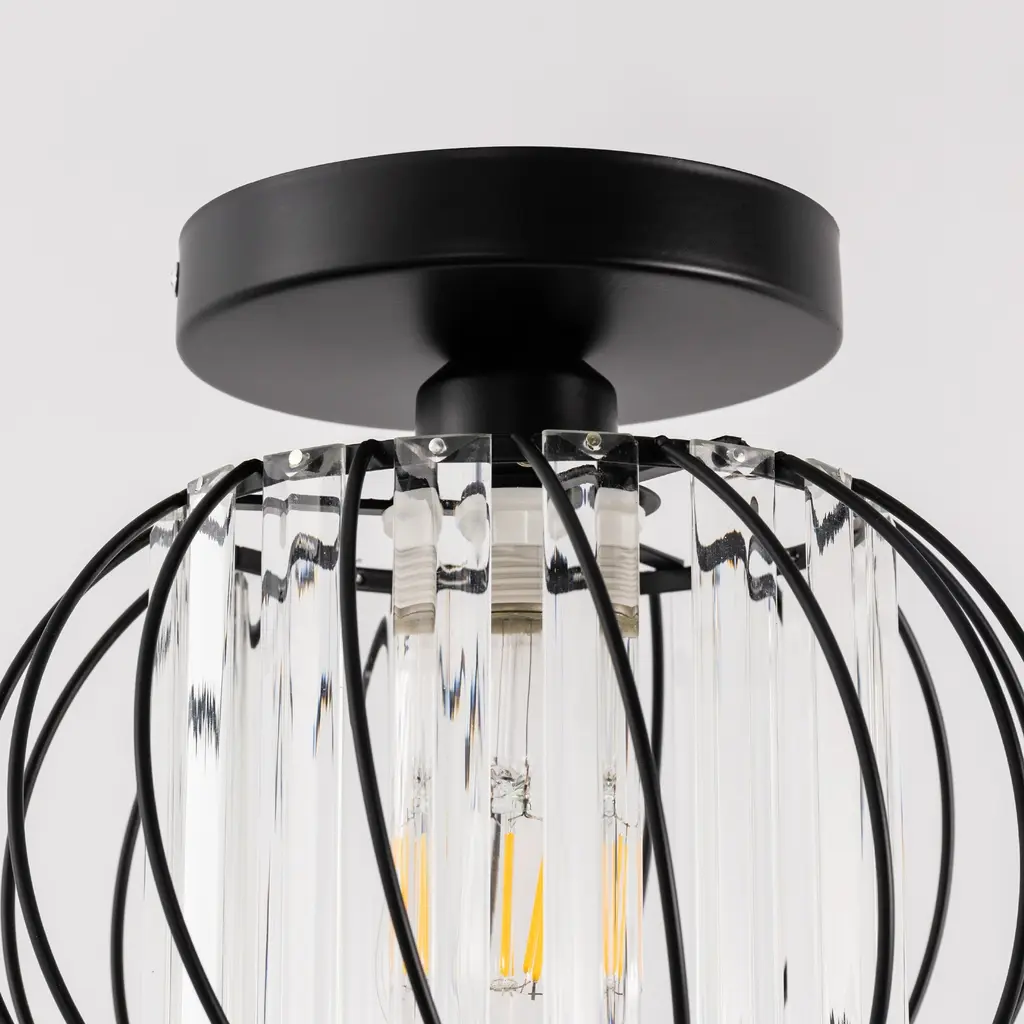 Yansun 7.09 In. 1-Light Modern Black Semi Flush Mount Ceiling Light Fixture With Clear Crystal Cage Shade - 9.45 In. - Black