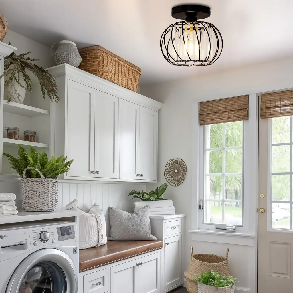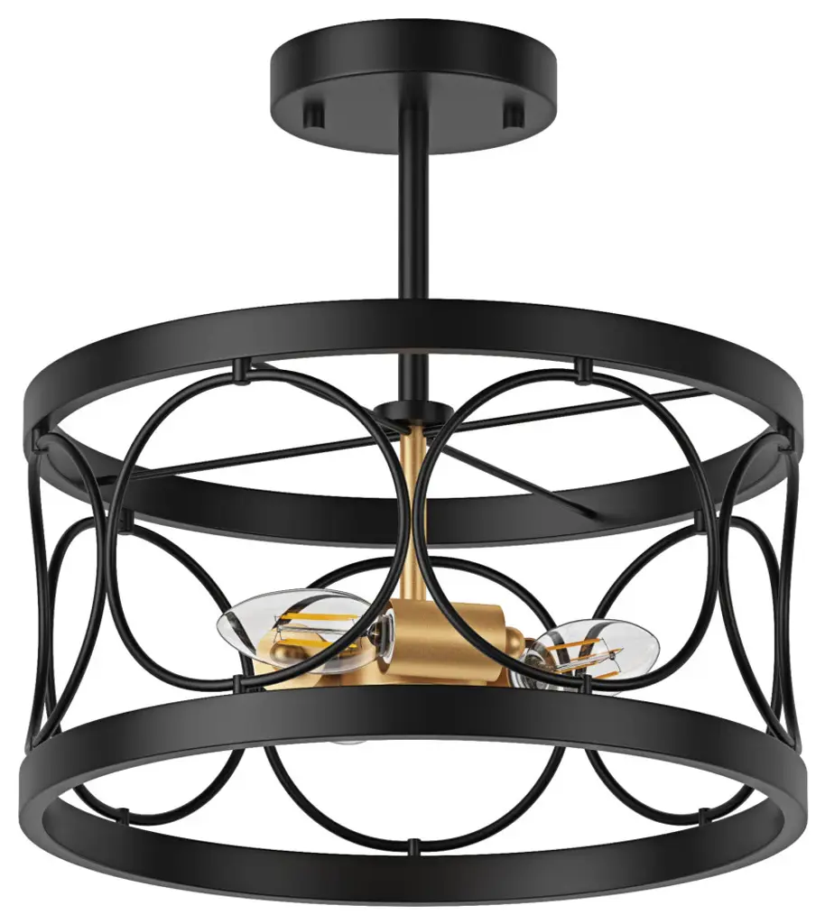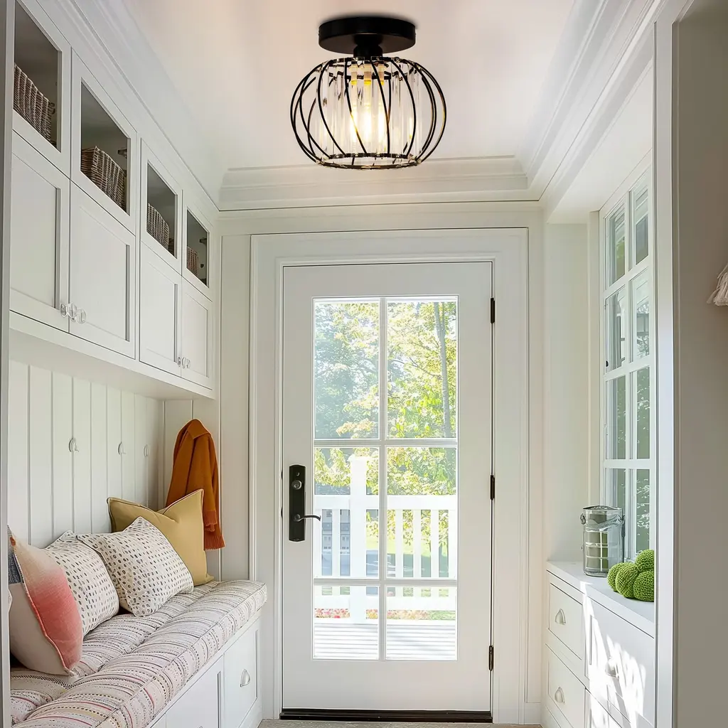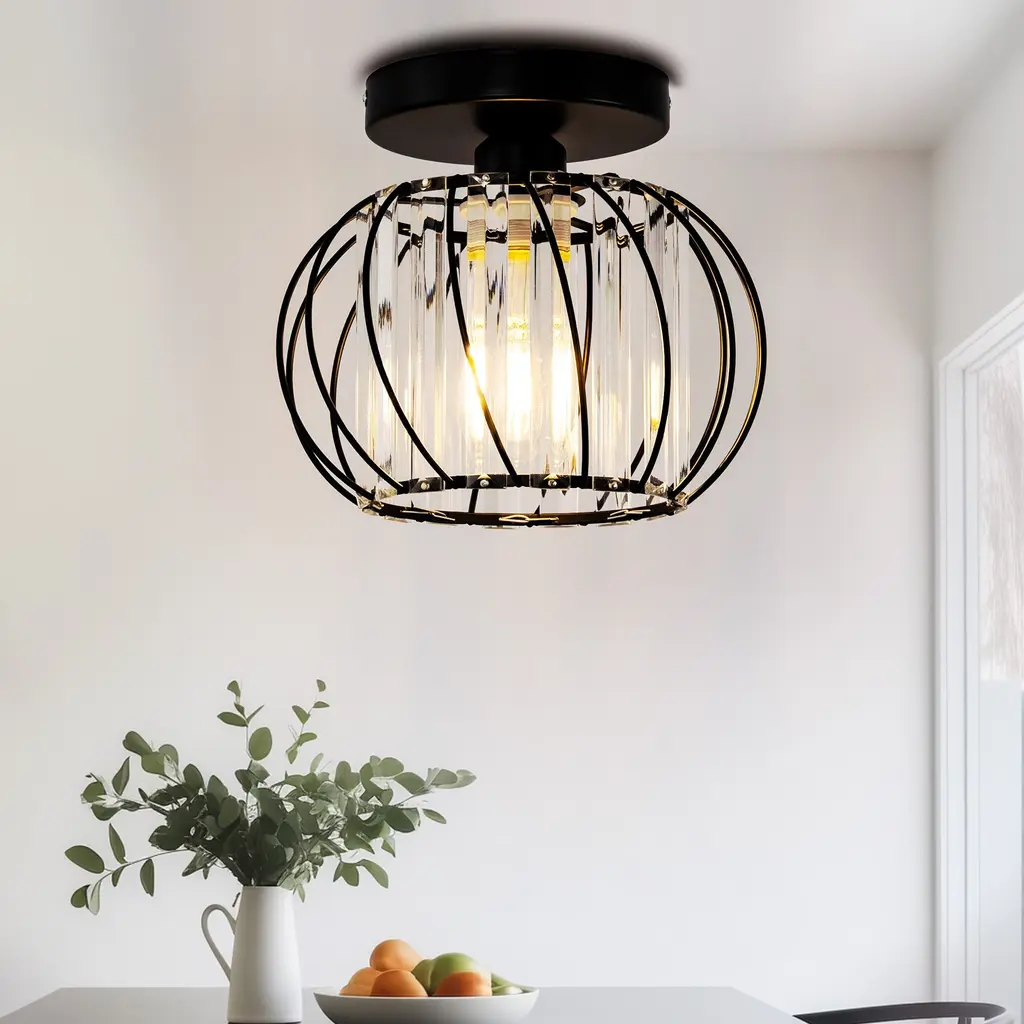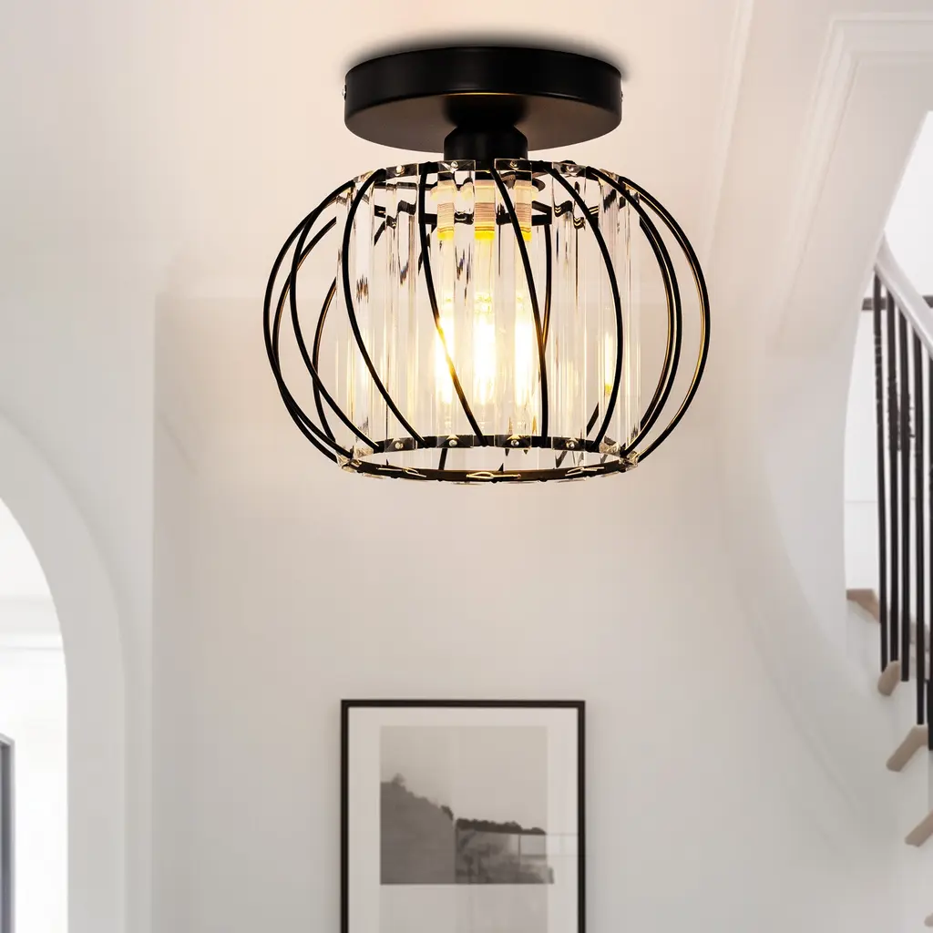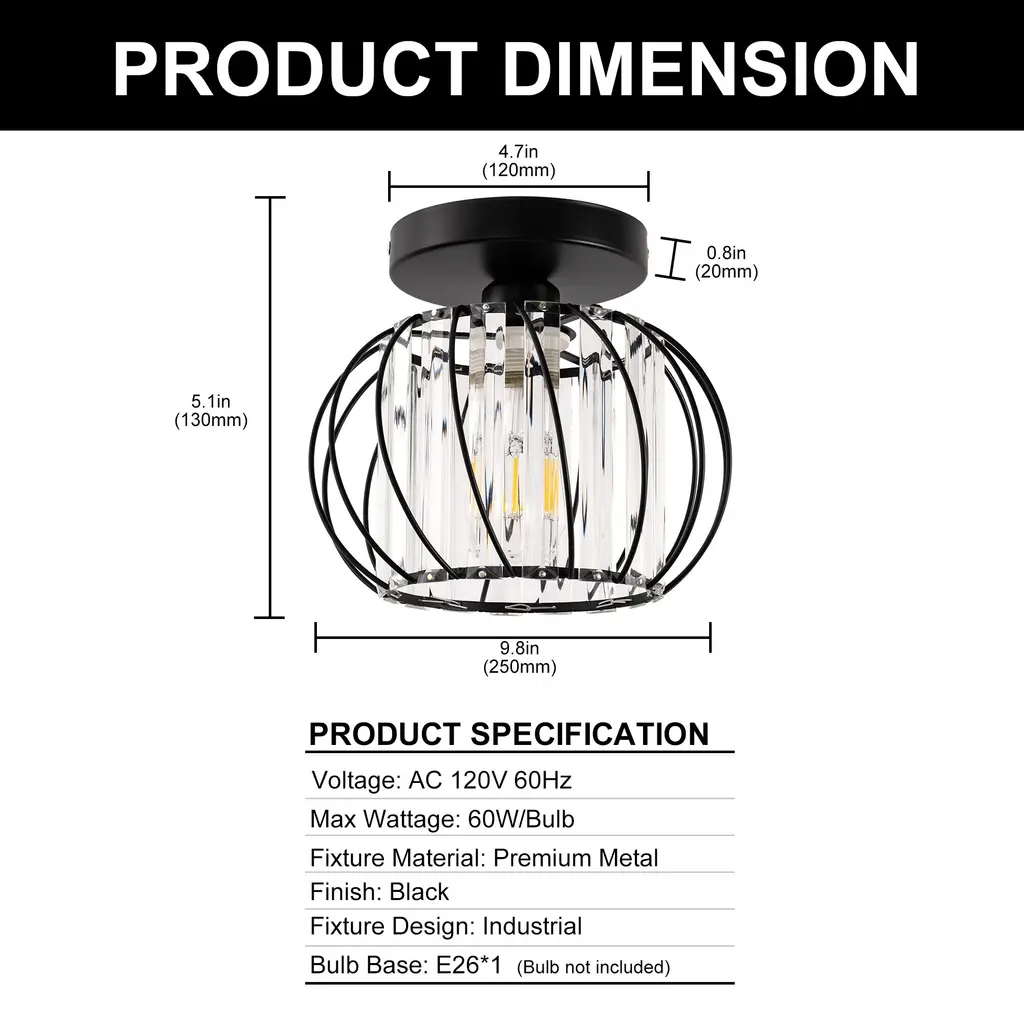 The new small black crystal ceiling lamp is a luxury style light. This semi-flush mount chandelier light seamlessly marries elegance with a touch of rustic charm, creating a modern and inviting ambiance in your home.(Bulb not included) Features: