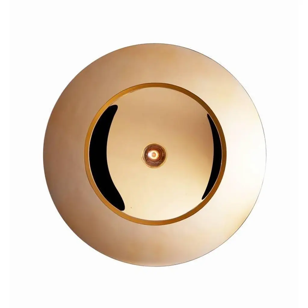 Gold Thermoformed glass (also available in Silver) mounted on a base available in lacquered black metal or solid oak. Can be used as a wall or ceiling light.Made by hand in Europe.