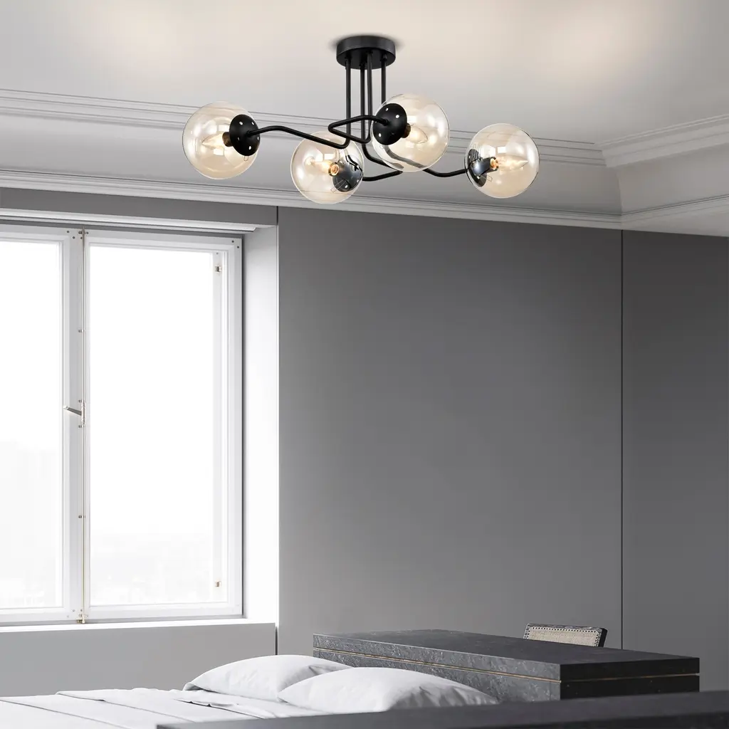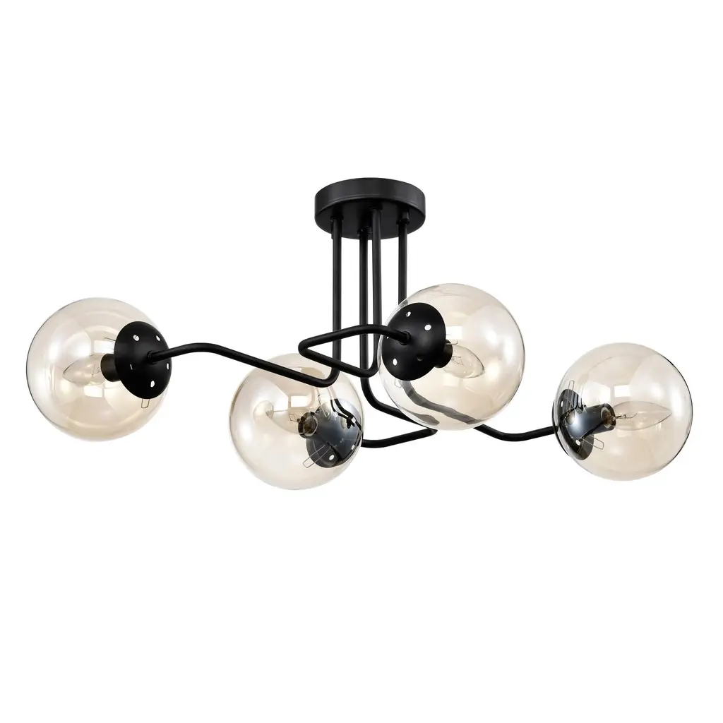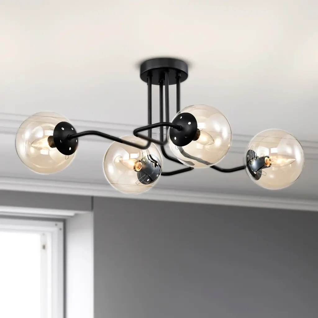 Ziza Modern Semi Flush Mount Ceiling Light With Globe Glass Shade 4 Light - Matte Black