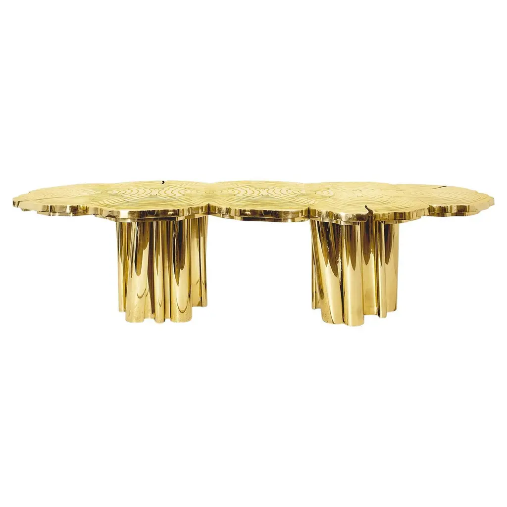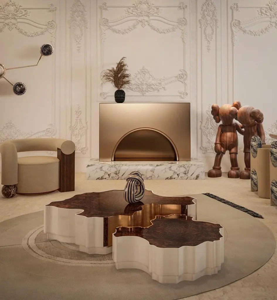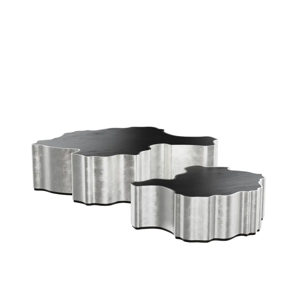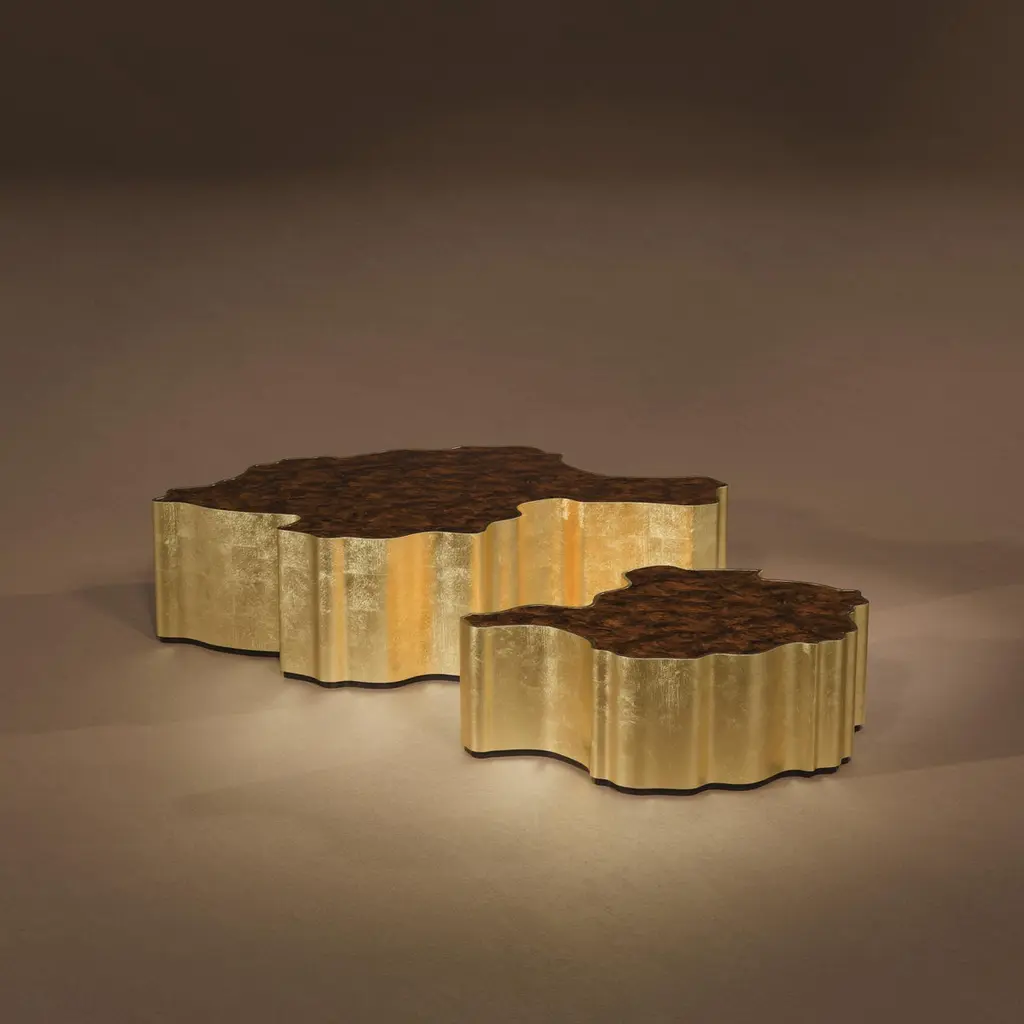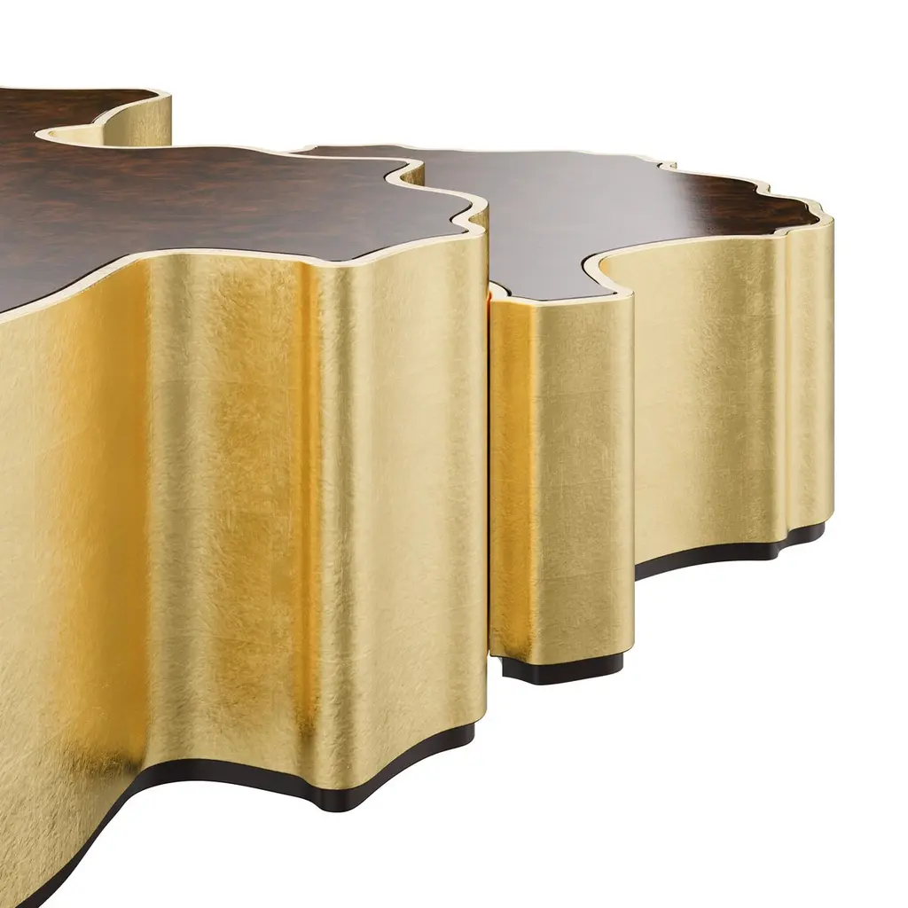 Malabar designed the Horizon center table to honor the discovery times and to remember the Portuguese maritime navigators that discovered unknown lands. These were Portugal's glorious times. Inspired by the divine vision of a New Land sighted from distant waters, this contemporary center table was designed with the organic contours of a coastline in mind. It honors the discoveries and evokes that the horizon is not a limit, combining walnut wood root with black lacquered wood. The gold leaf on the inner surface, more than an embellishment, indicates the area to be used as a module, with other complementary versions. This piece will give personality and a sense of adventure to any living room. Horizon set center table was designed by Malabar and is part of the Heritage collection.