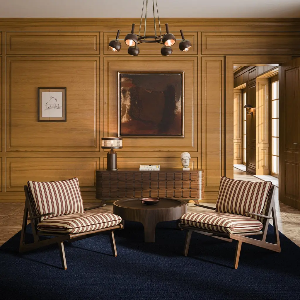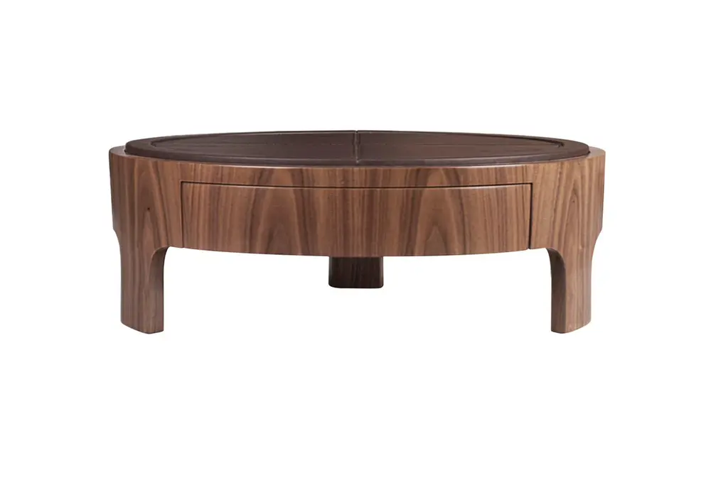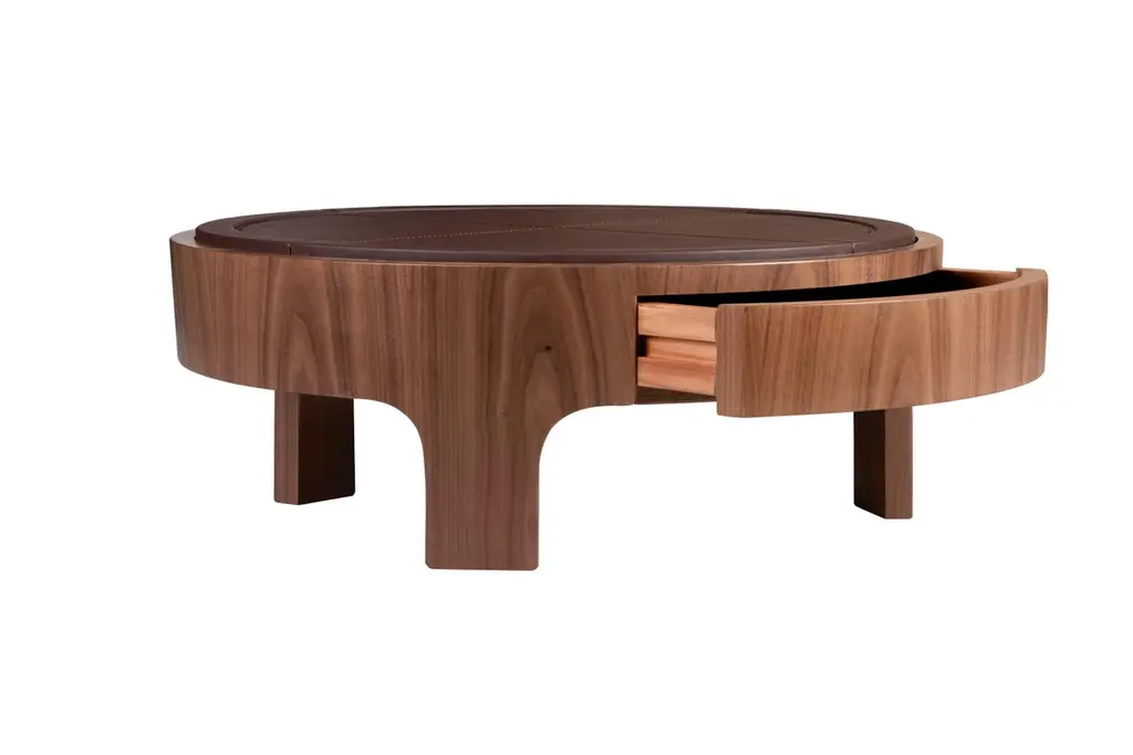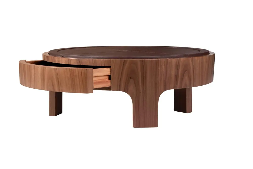 Churchill Center Table has a distinctive, imponent yet modest look, and it’s meticulously handmade with the rigorously selected material, allying the best in modern design and traditional craftsmanship. This three-legged center table features a one-drawer round structure in solid walnut wood and a genuine leather-lined top. As part of a private club’s environment, between power, law, and business, this center table hints at the majestic exclusivity of the club’s status.