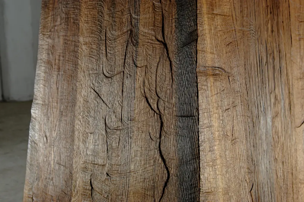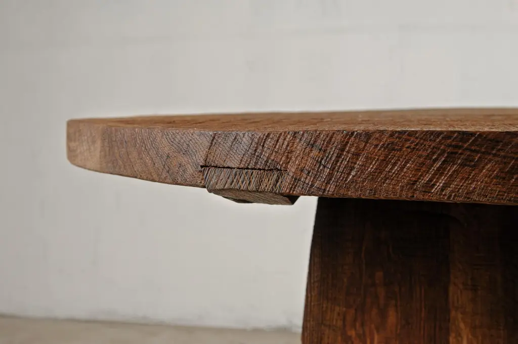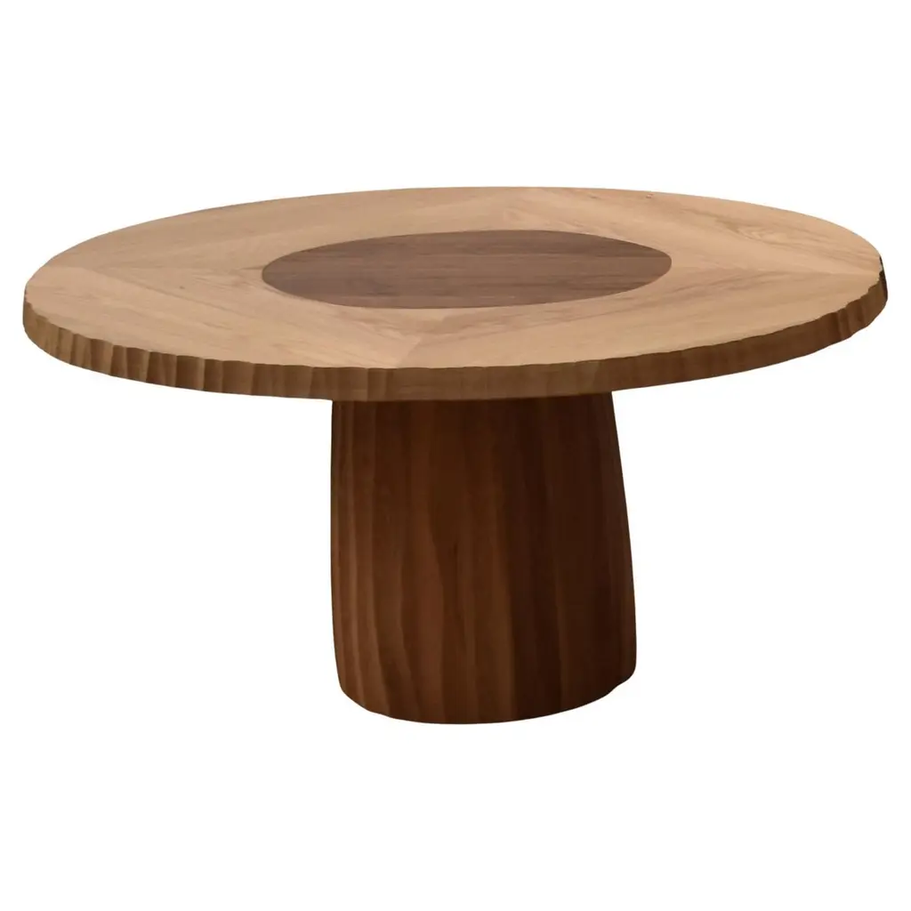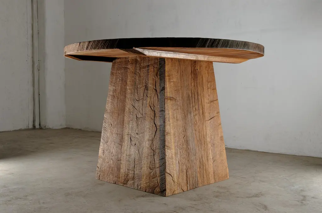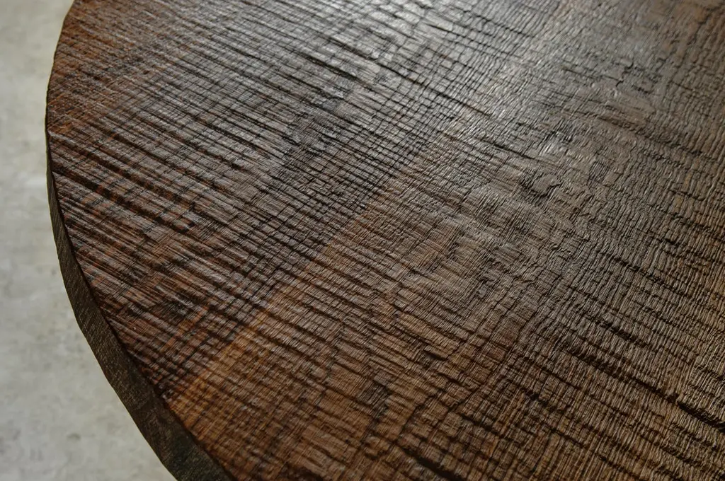 Brutalist center table N1 in Solid OakwoodDimensions: D. 160 x H. 76 cmUnique piece made to order.Founded by artist Denis Milovanov, SÓHA design studio conceives and produces furniture design and decorative objects in solid oak in an authentic style. Inspiration to create all these items comes from the Russian North aesthetics with its severe nature, log huts black from time and climate and scant patterns. Wood is masterfully hand processed with chainsaw or chisel, whereby producing beautiful surface patterns. The wood is soaked in boiling baths of linseed oil, creating this special patina and making each creation a very unique piece. Reacting with tanning substances under high temperature, oil gives the objects expressive and natural colours, from light brown to charcoal-black.-----The designer was born on April 25, 1975, in Moscow. He studied woodworking at the 303 Higher Technical School in 1990-1993. In 2012 Milovanov established DENIS MILOVANOV workshop where he created design-art objects and the functional kitchen utensils series. In 2016 he established the SÓHA brand.