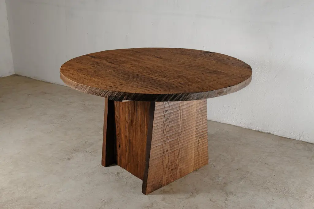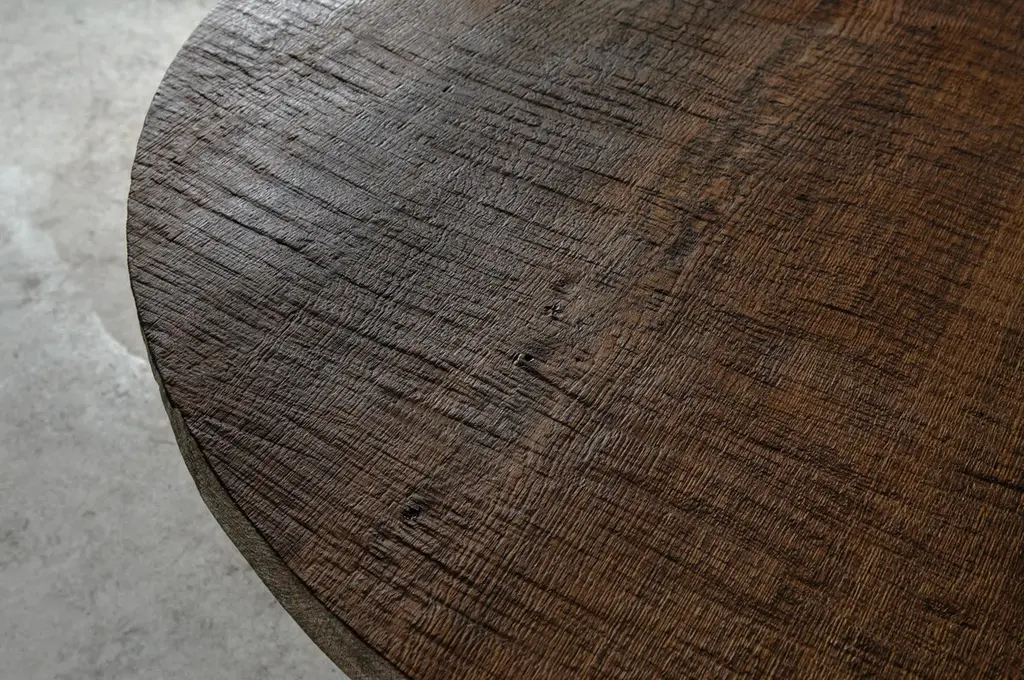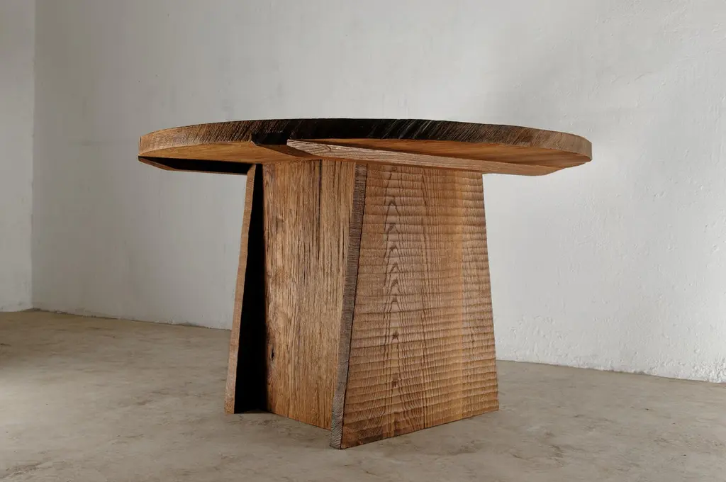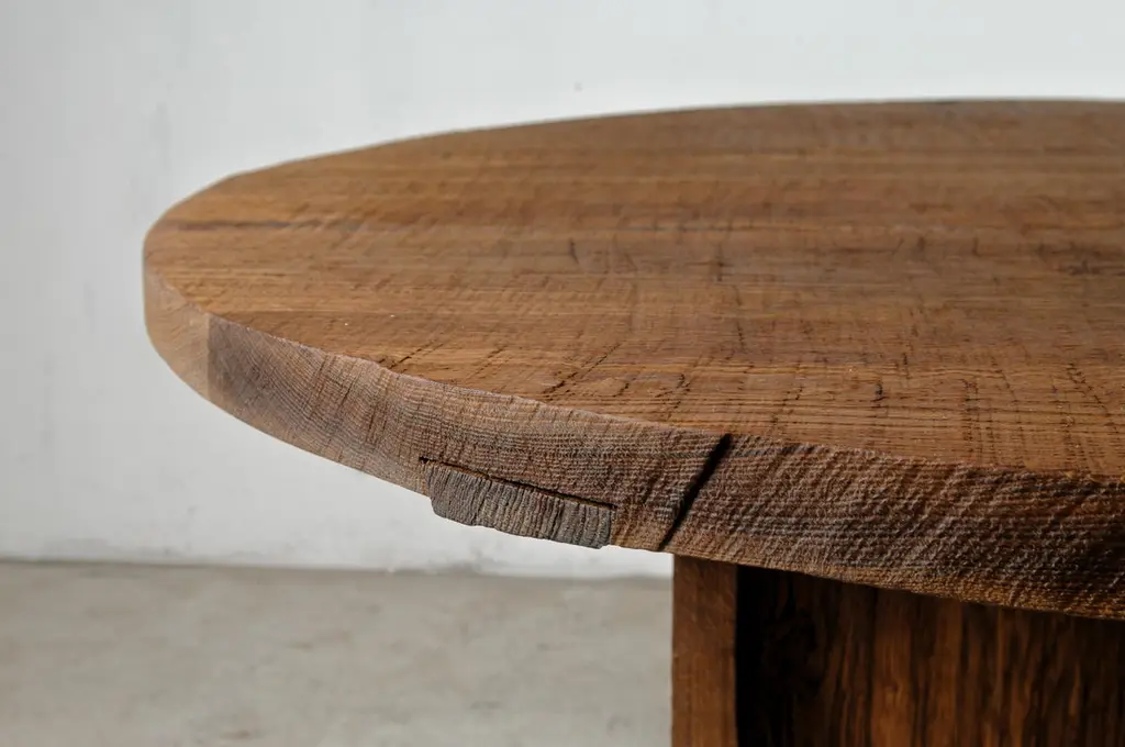 Brutalist center table N2 in Solid OakwoodDimensions: D. 100 x H. 76 cmUnique piece made to order.Founded by artist Denis Milovanov, SÓHA design studio conceives and produces furniture design and decorative objects in solid oak in an authentic style. Inspiration to create all these items comes from the Russian North aesthetics with its severe nature, log huts black from time and climate and scant patterns. Wood is masterfully hand processed with chainsaw or chisel, whereby producing beautiful surface patterns. The wood is soaked in boiling baths of linseed oil, creating this special patina and making each creation a very unique piece. Reacting with tanning substances under high temperature, oil gives the objects expressive and natural colours, from light brown to charcoal-black.-----The designer was born on April 25, 1975, in Moscow. He studied woodworking at the 303 Higher Technical School in 1990-1993. In 2012 Milovanov established DENIS MILOVANOV workshop where he created design-art objects and the functional kitchen utensils series. In 2016 he established the SÓHA brand.