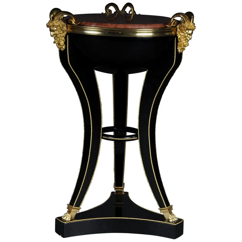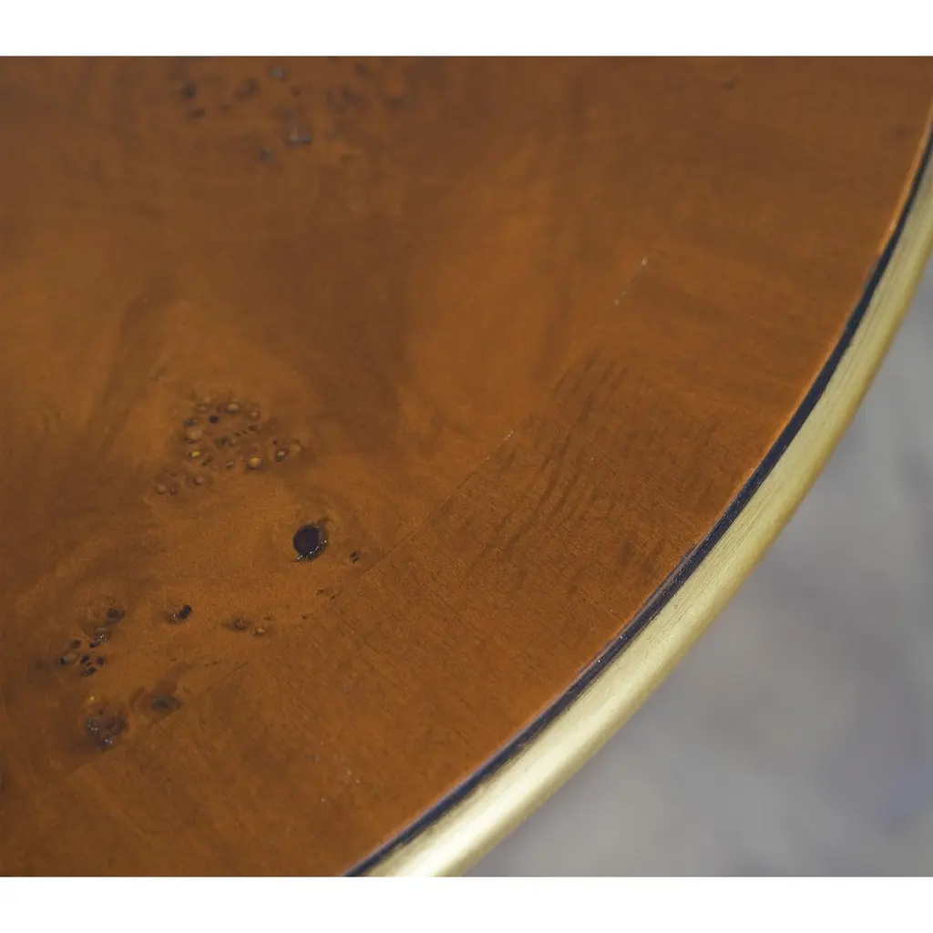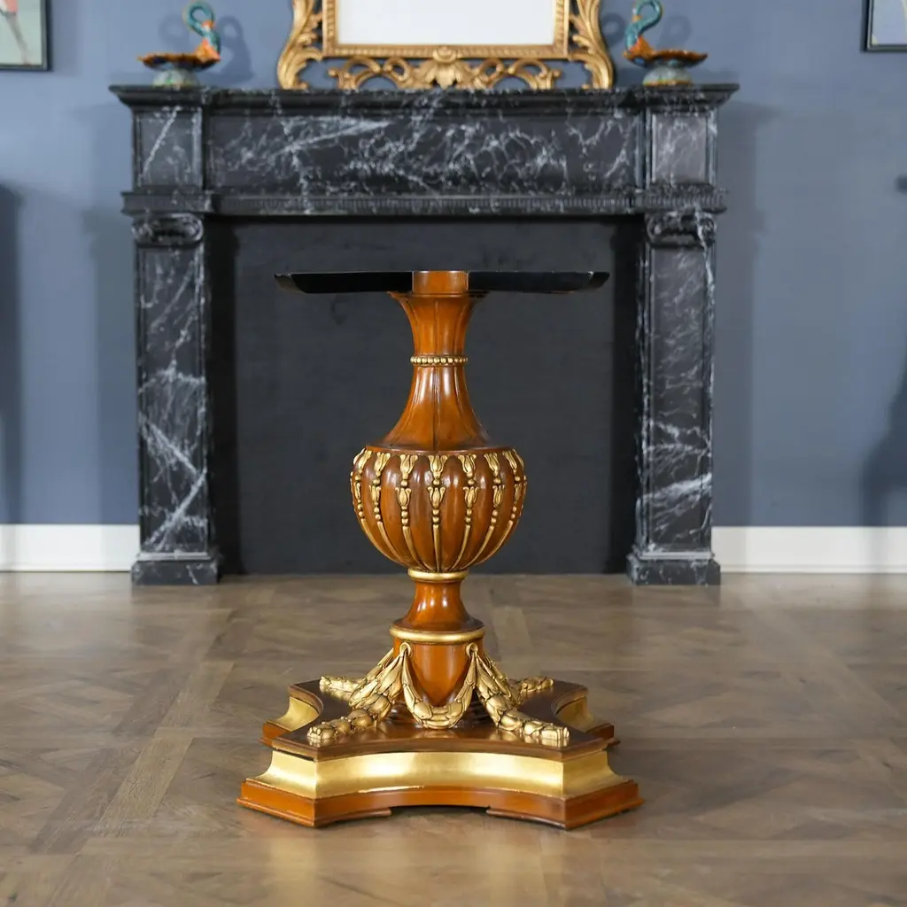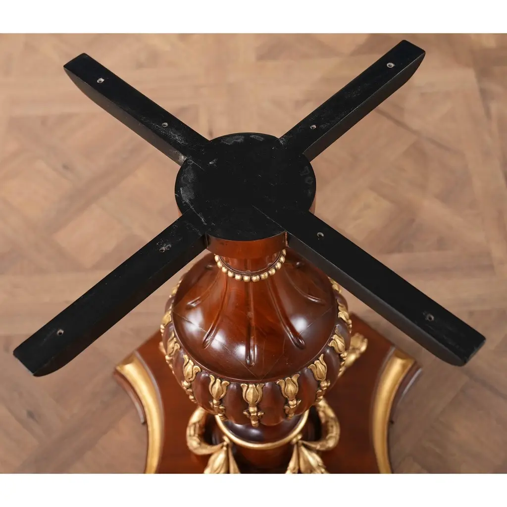 A gorgeous, high quality Burled Center Table from Niagara Furniture with plenty of presence to brighten up any room. Banded and burled top, hand carved solid mahogany base and real gold leaf accents all work together to create a table that could be the centerpiece of your front entry way.Measures 39″w x 31″h metric 99 79